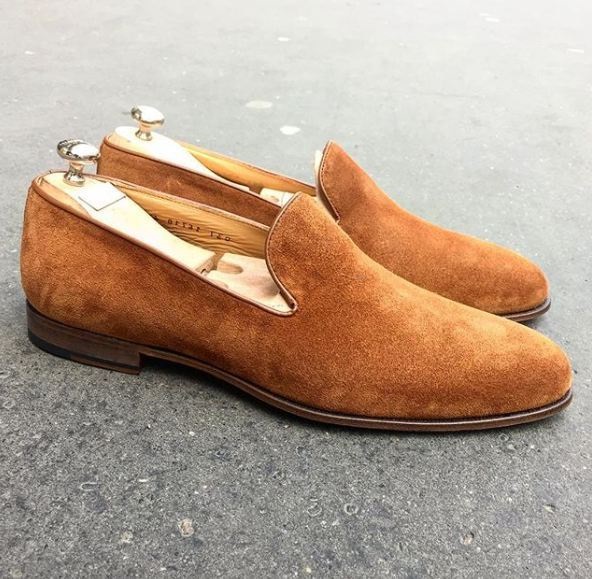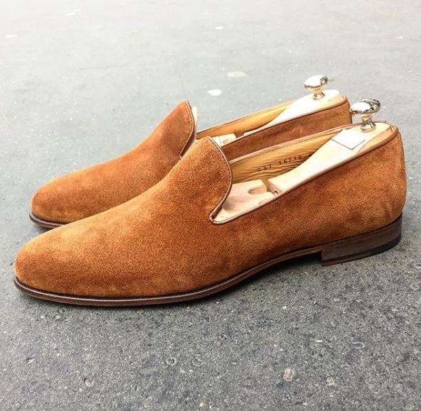 Handmade men dress moccasin shoes, men beige suede shoes, slip on wear shoes men
