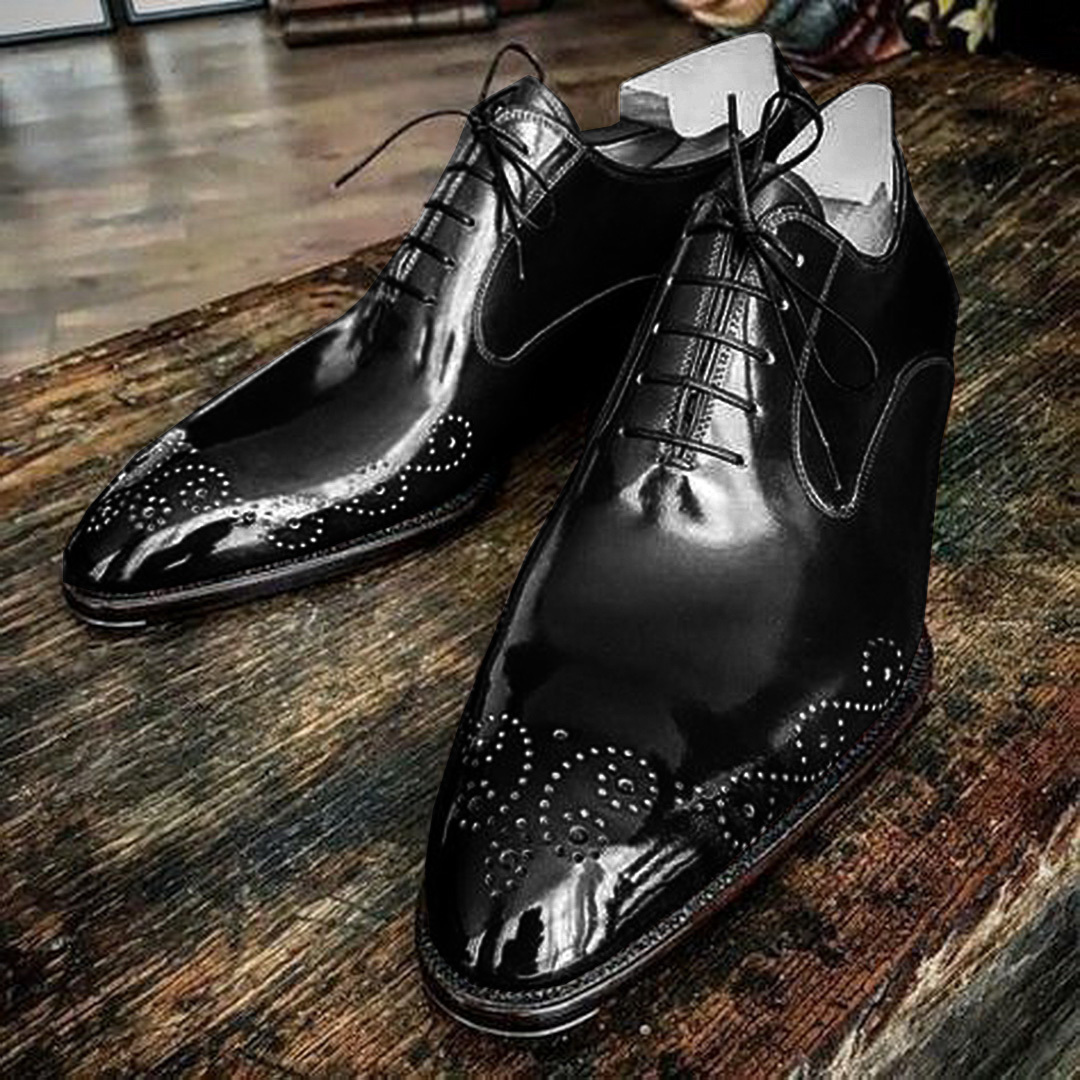 Handmade Men American Luxury Brogues Toe Black Leather Shoes, leather shoes
