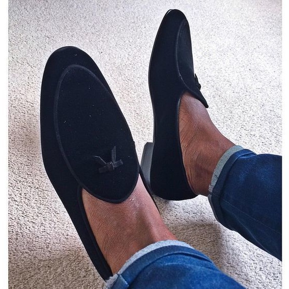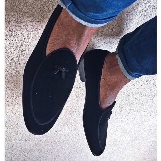 Handmade men black suede shoes, moccasin slip on shoes, men business dress shoes