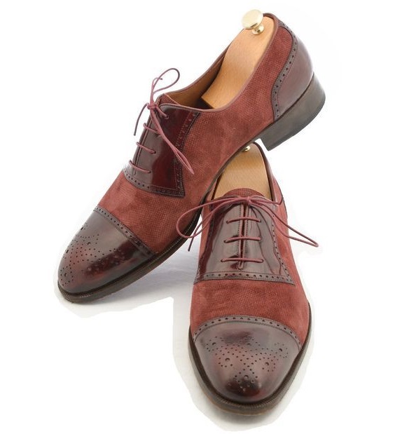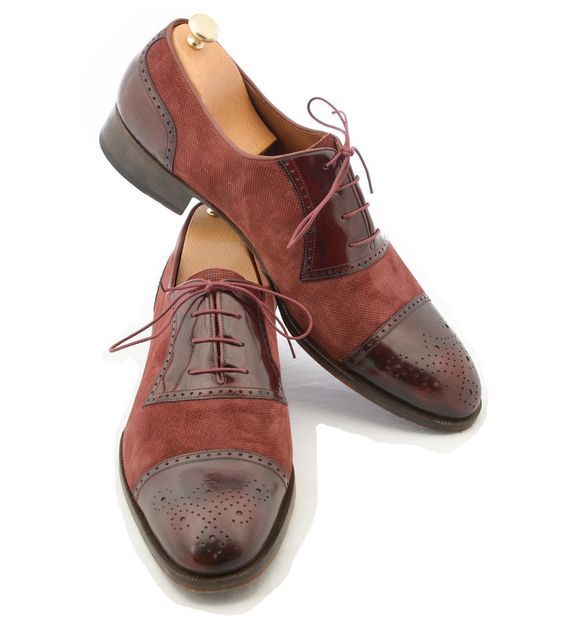 Handmade Men Formal Two Tone Shoes Men Burgundy Color Leather Dress brogue Shoes
