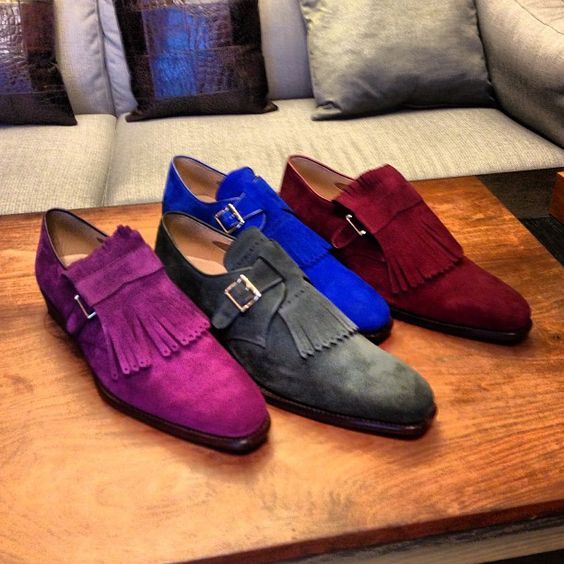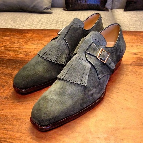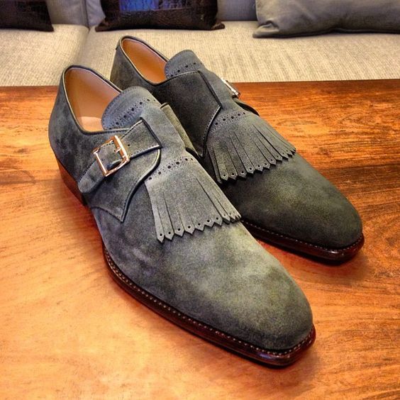 Handmade men gray suede shoes, men dress business shoes, monk strap fringes shoe