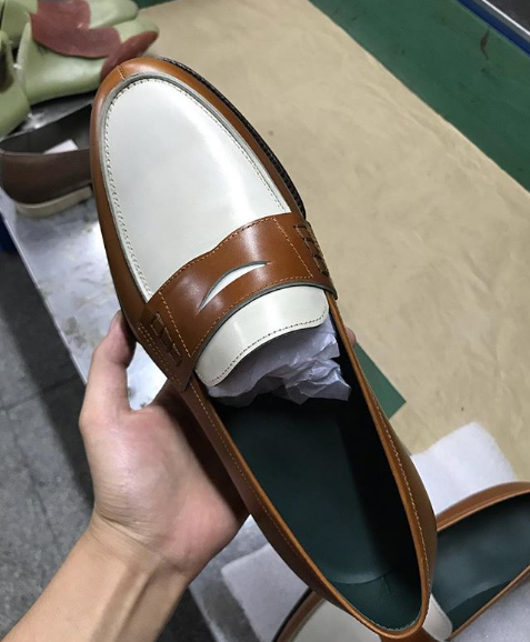 Handmade brown and white, Tan & White slip ons shoes, moccasin dress shoes, leather loafers