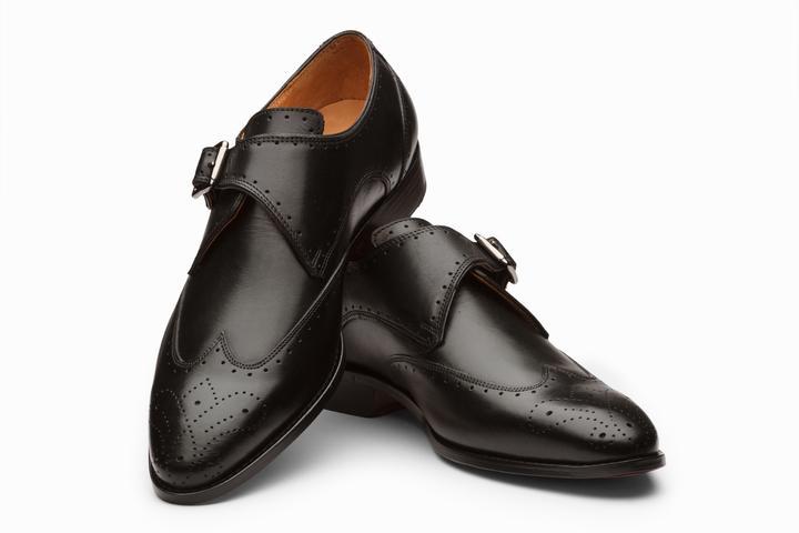 New Men's Handmade Wing Tip Brogue Black color Leather Monk Strap Dress Shoes