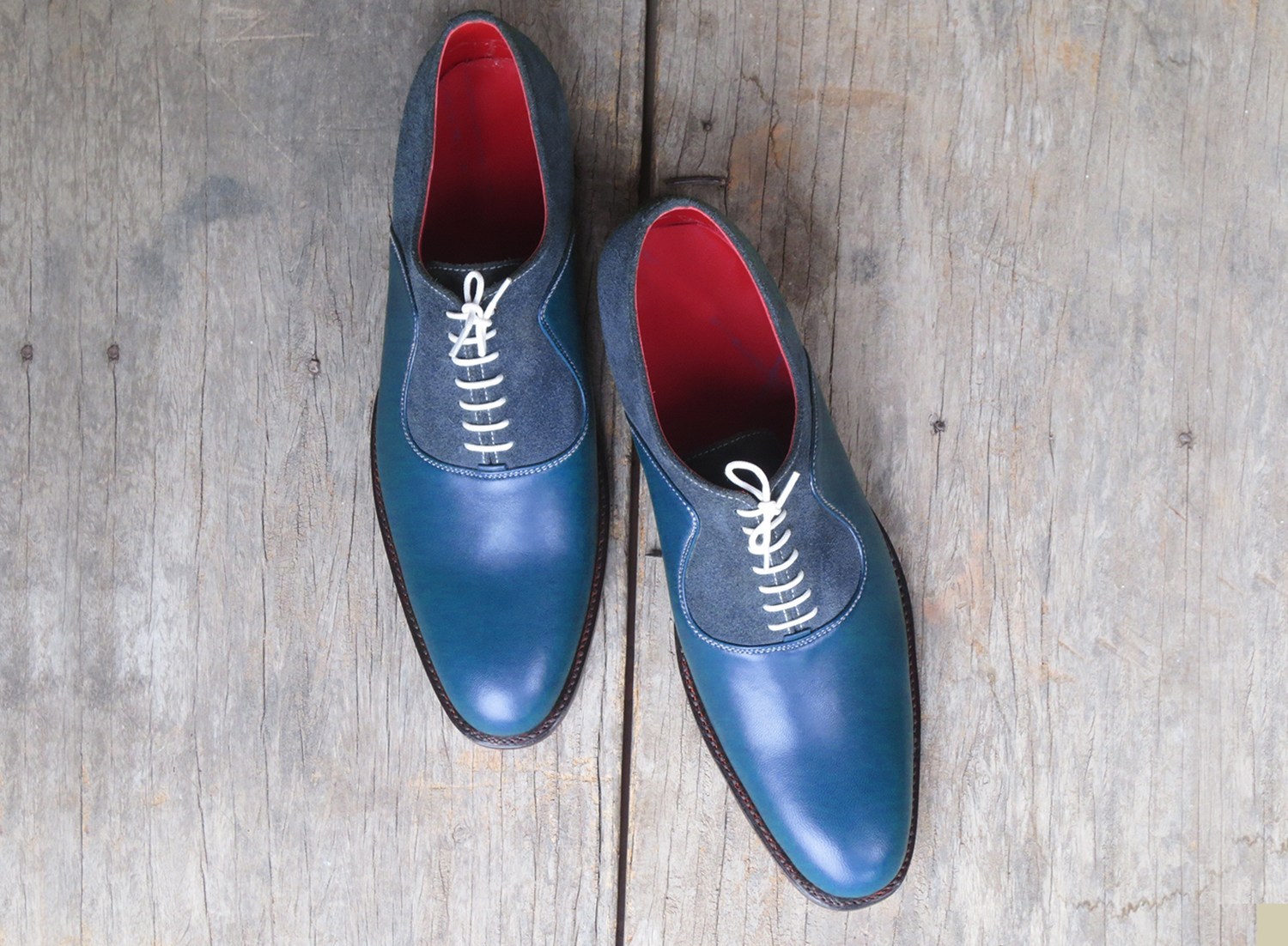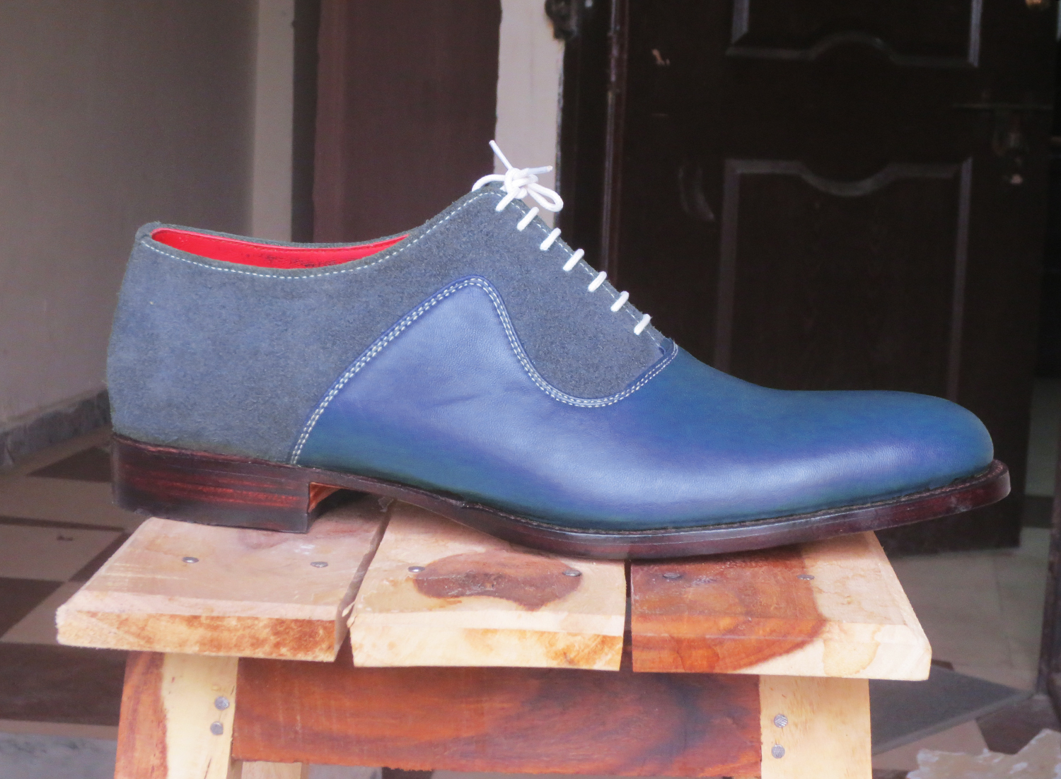 Handmade Men’s Suede Leather Derby Formal Shoes, Men’s Blue Lace Up Stylish Shoes