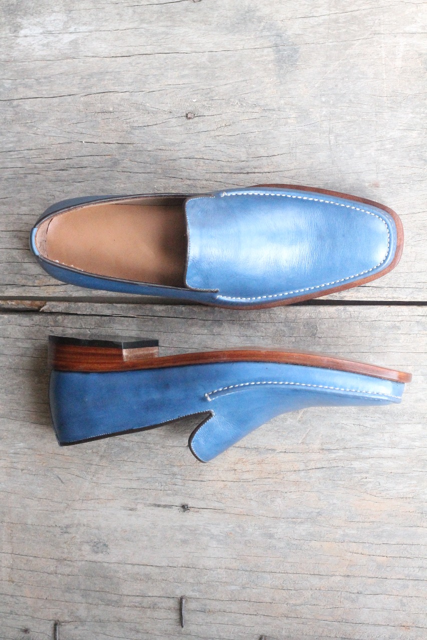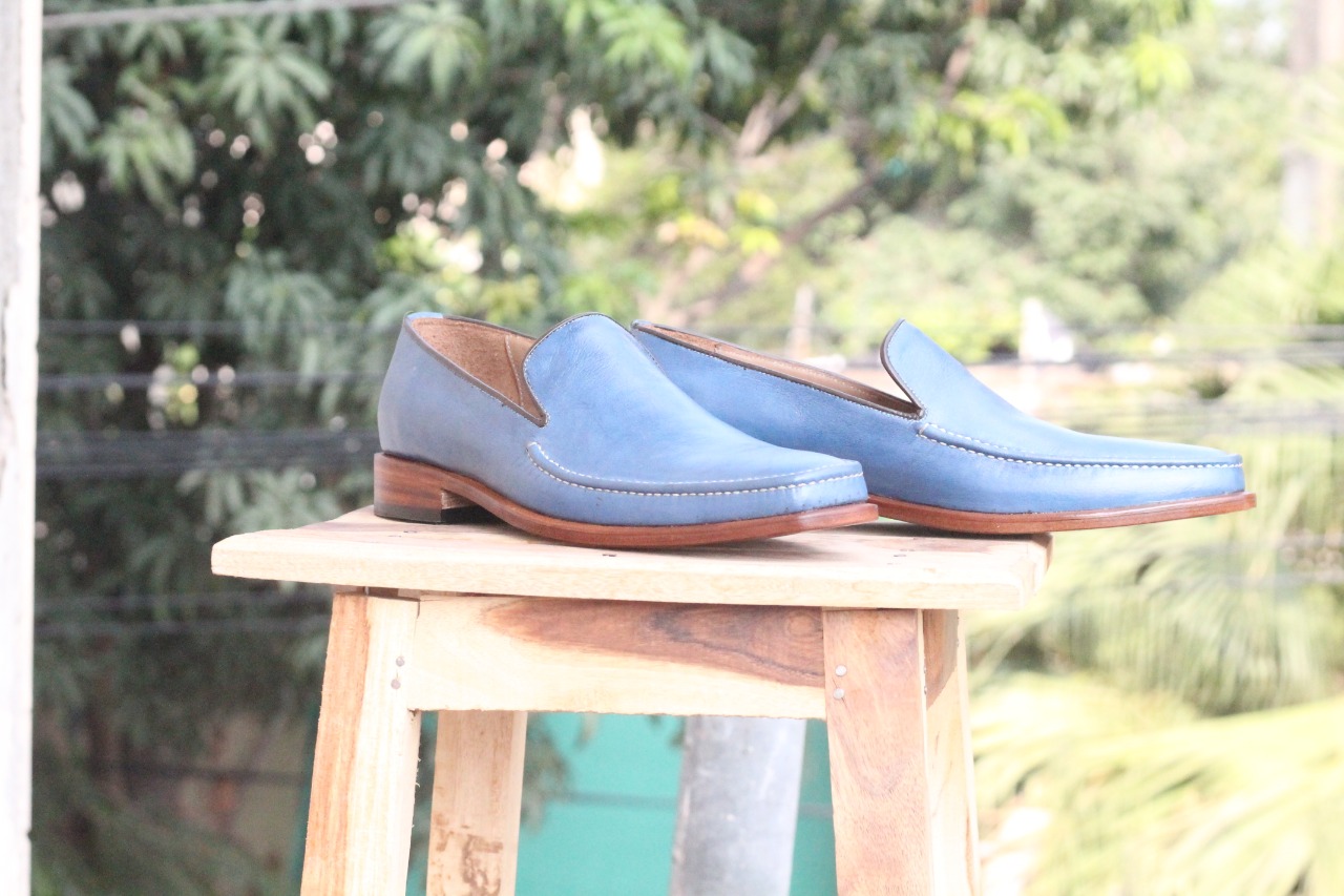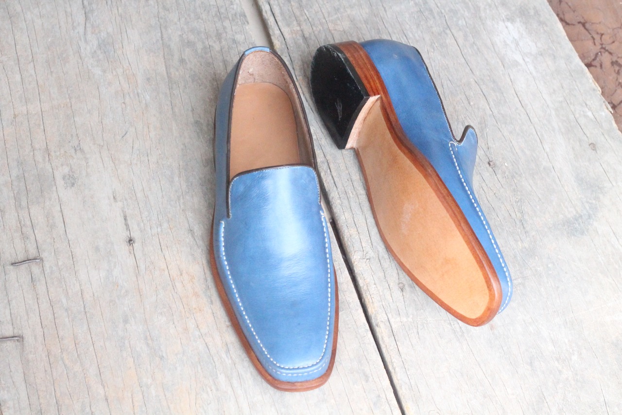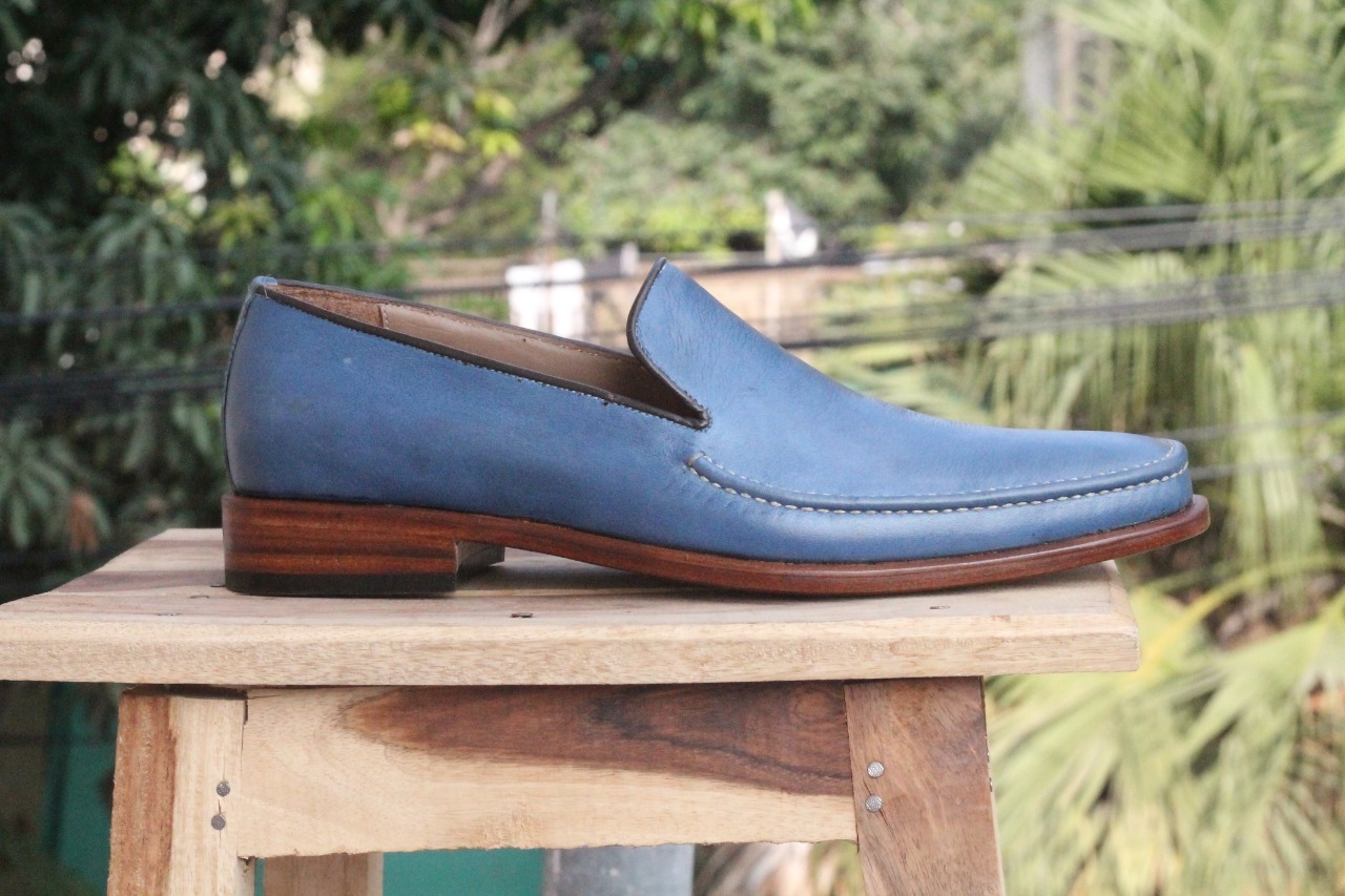 Blue Leather Round Toe Loafers. Men leather dress shoes. Mens Handmade Slip Ons