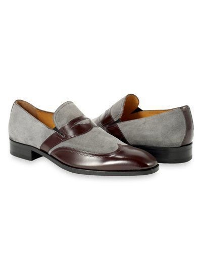 Handmade Brown Gray Suede Leather Penny Loafers Shoes