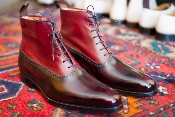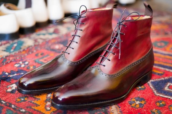 Brown Burgundy Leather Lace Up Boots. Mens Handmade High Ankle Boots