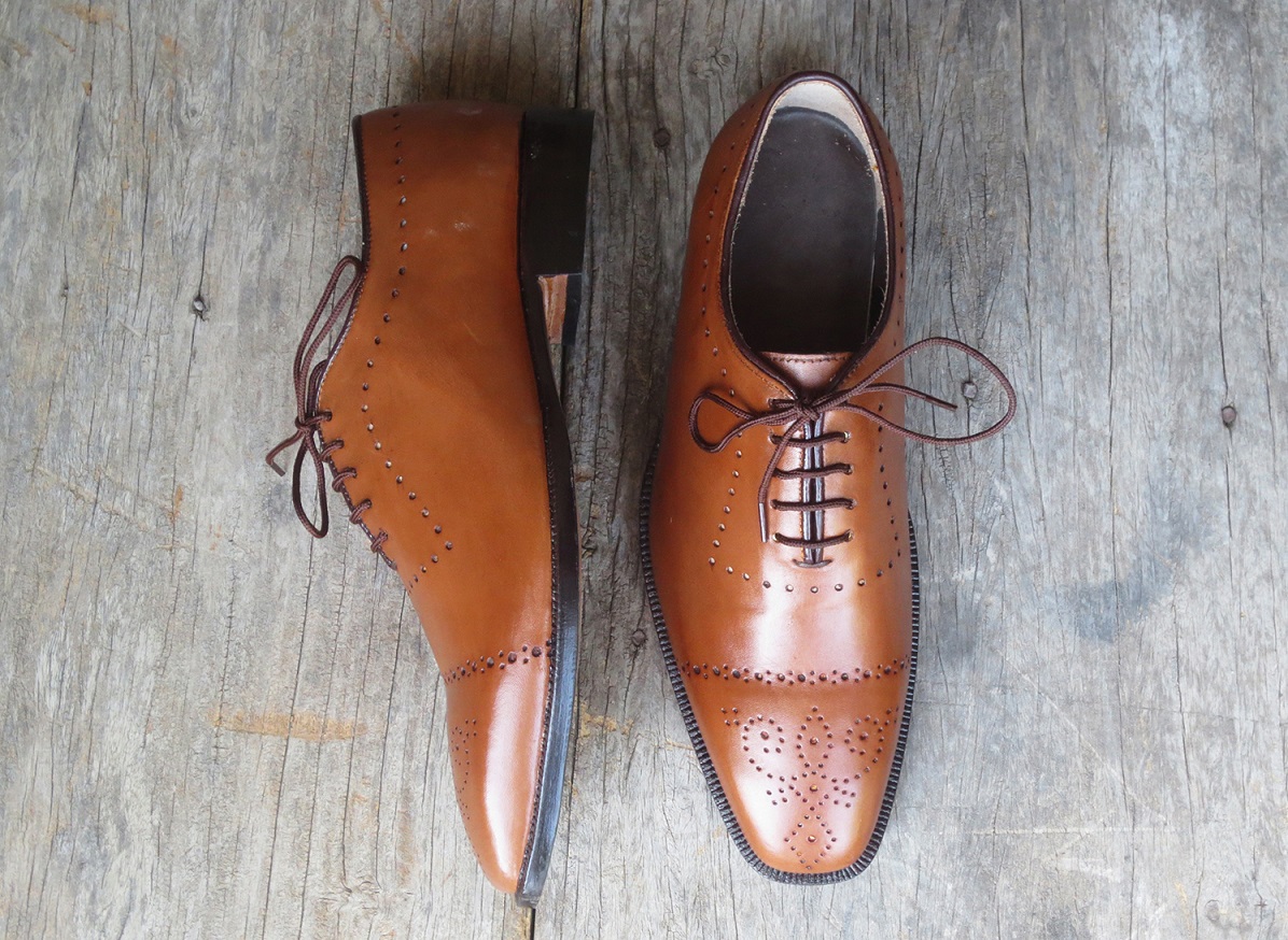 New Handmade Men Stylish Brogue Cap Toe Tan Leather Dress Formal Lace Up Shoes