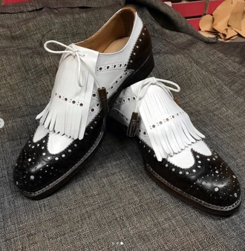 Handmade western fringes shoes, men wingtip brogue dress shoes, leather shoe men