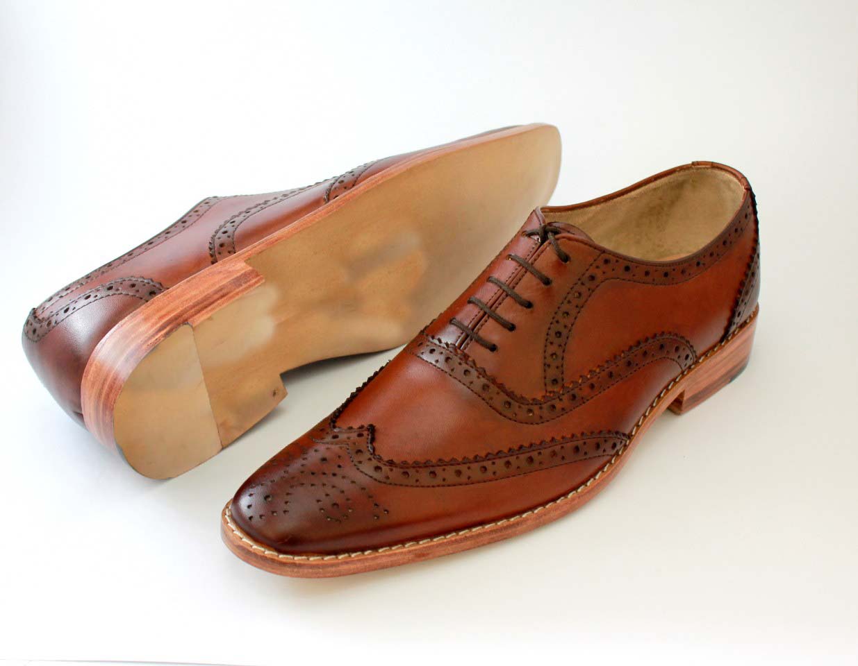 Handmade Mens Casual Shoes, Mens Tan Brown Leather Wing Tip Lace Up Casual Shoes.
