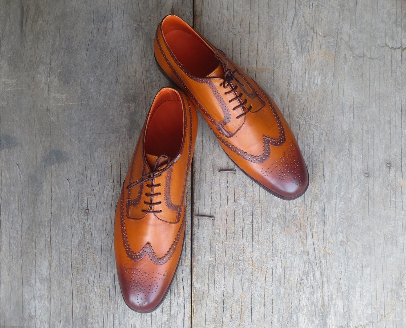 Mens Brown Leather Lace Up Shoes Men Dress Formal Wing Tip Brogue Shoes