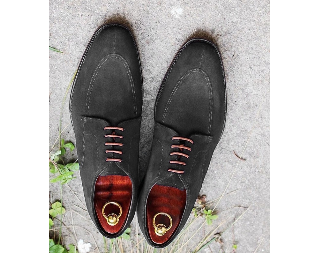 Handmade Dark Gray Suede Split Toe Lace Up shoes for mens. Mens Suede Shoes