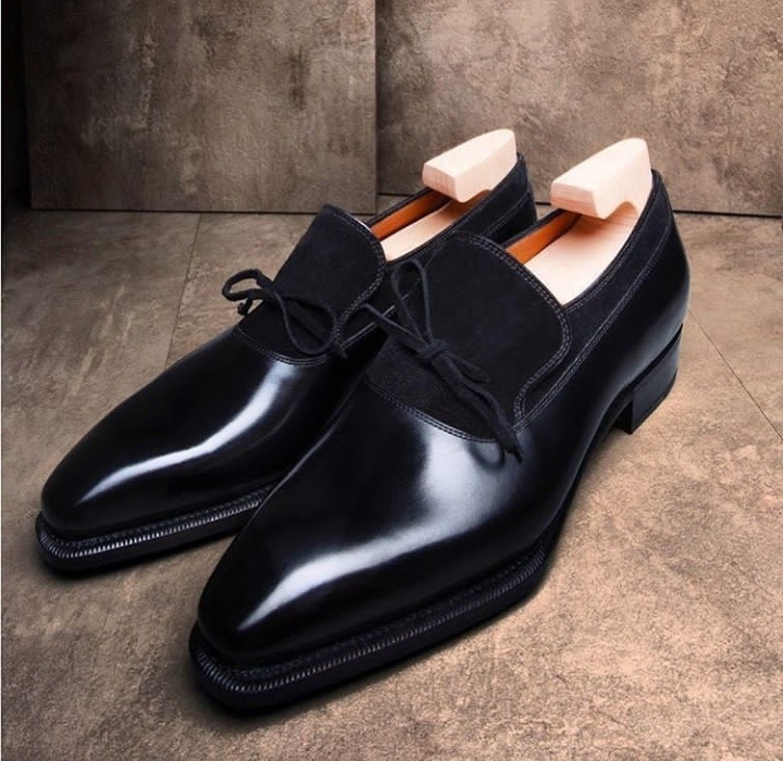Handmade Mens Lace Up Shoes, Mens Black Leather Suede Shoes