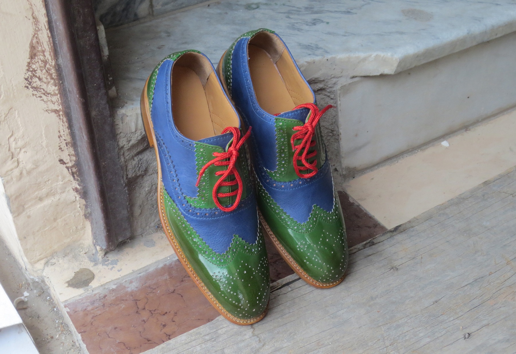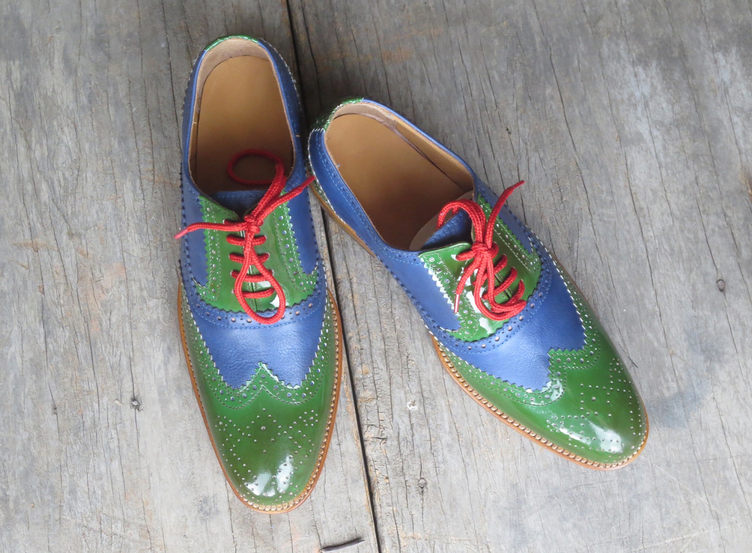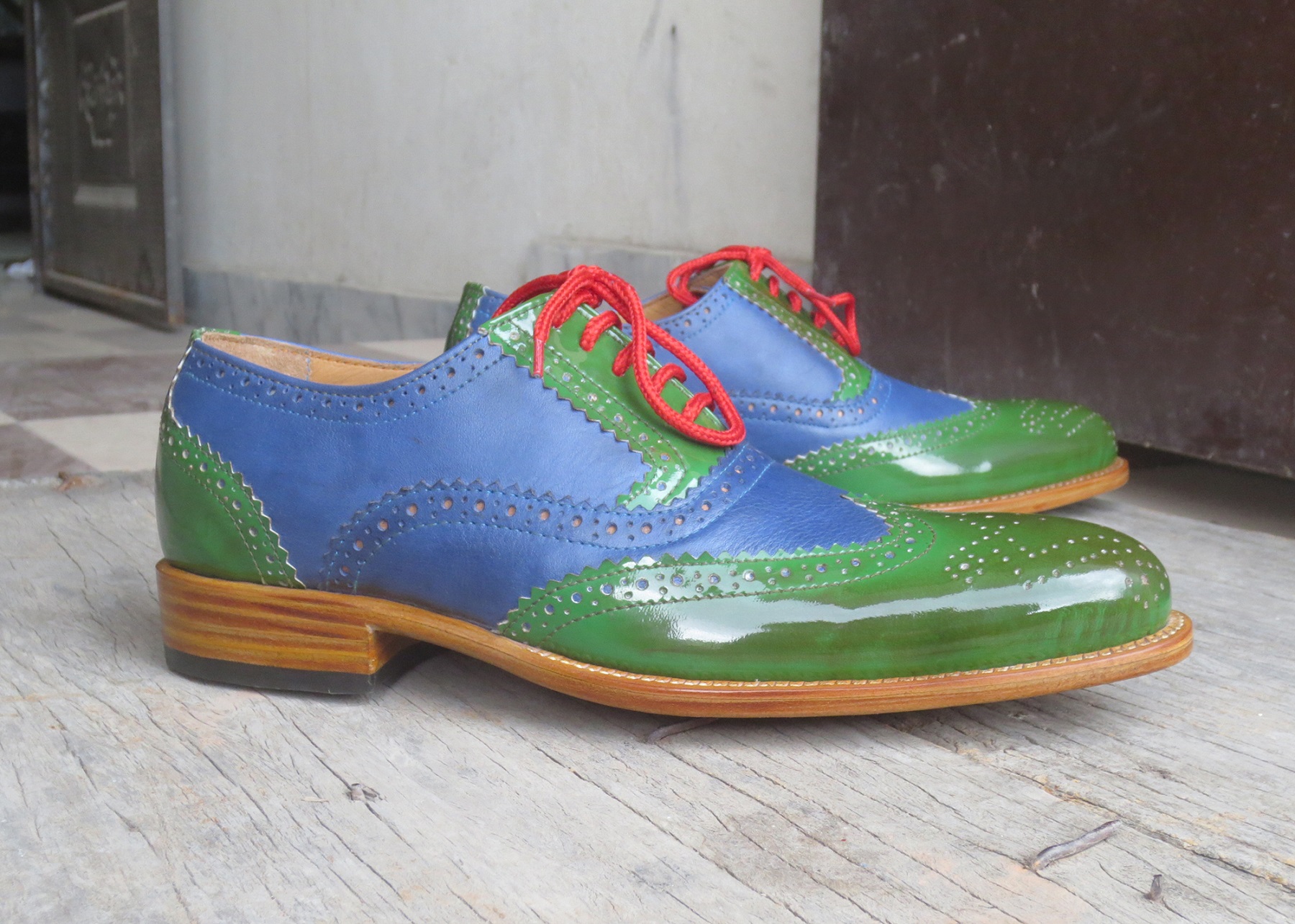 Mens Blue Green Leather Lace Up Shoes Men Dress Formal Wing Tip Brogue Shoes