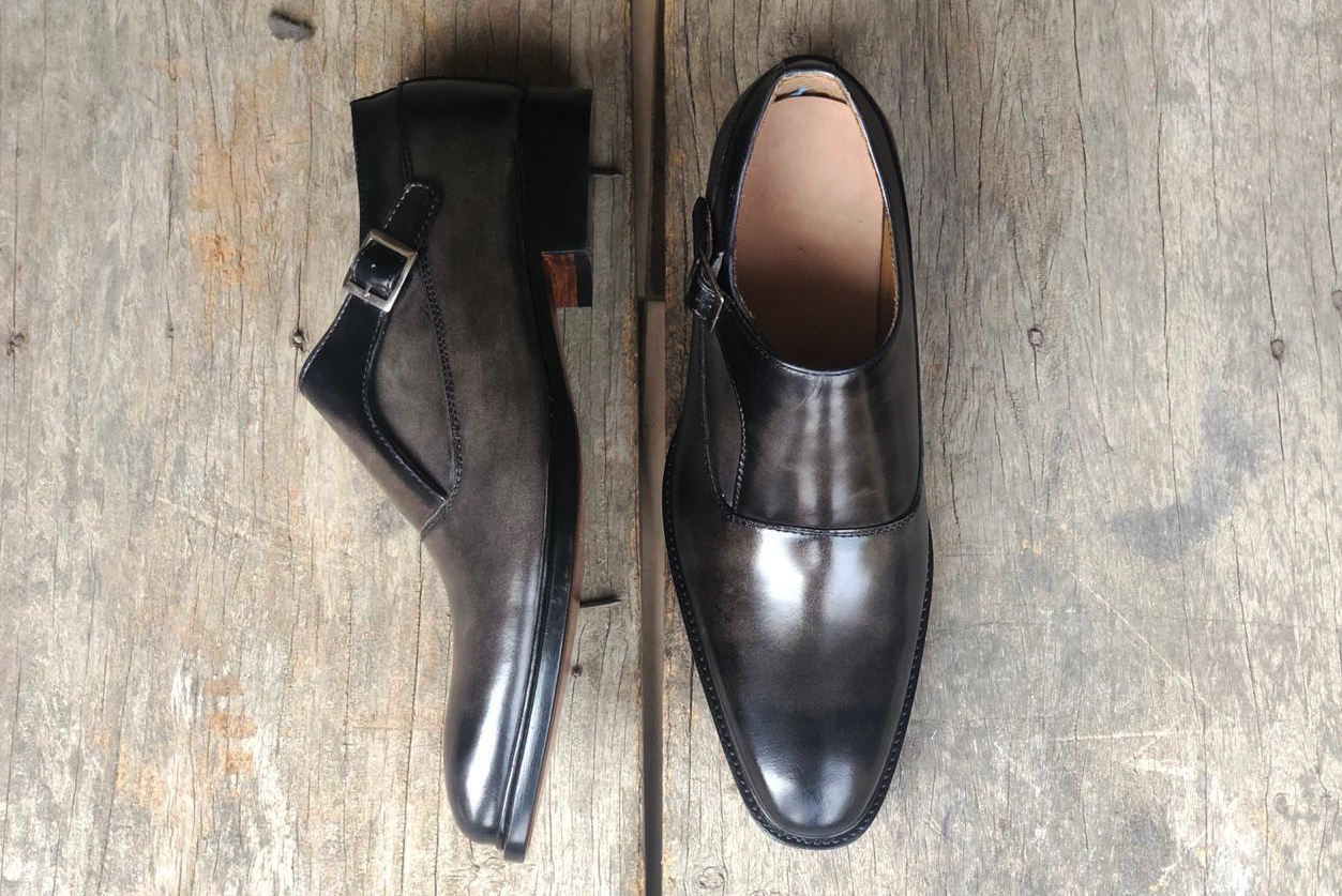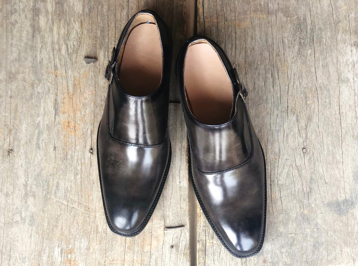 Mens Monk Shoes. Gray comfortable Handmade Shoes, Mens Leather Shoes