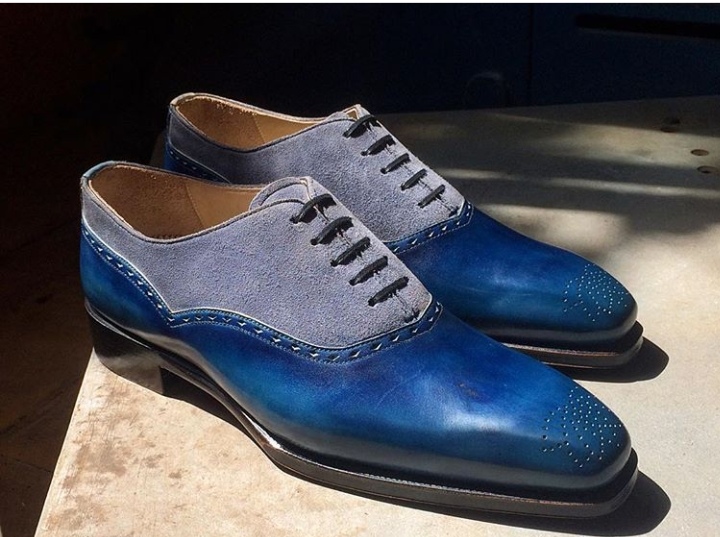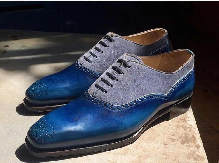 Handmade Mens Blue Gray Suede Leather Shoes, Lace Up Stylish Derby Brogue Dress Formal Shoes