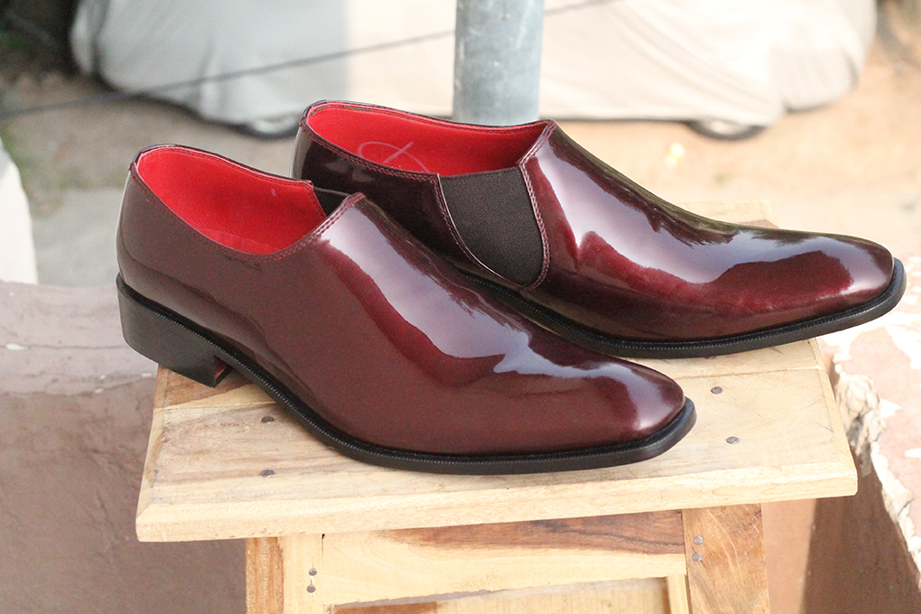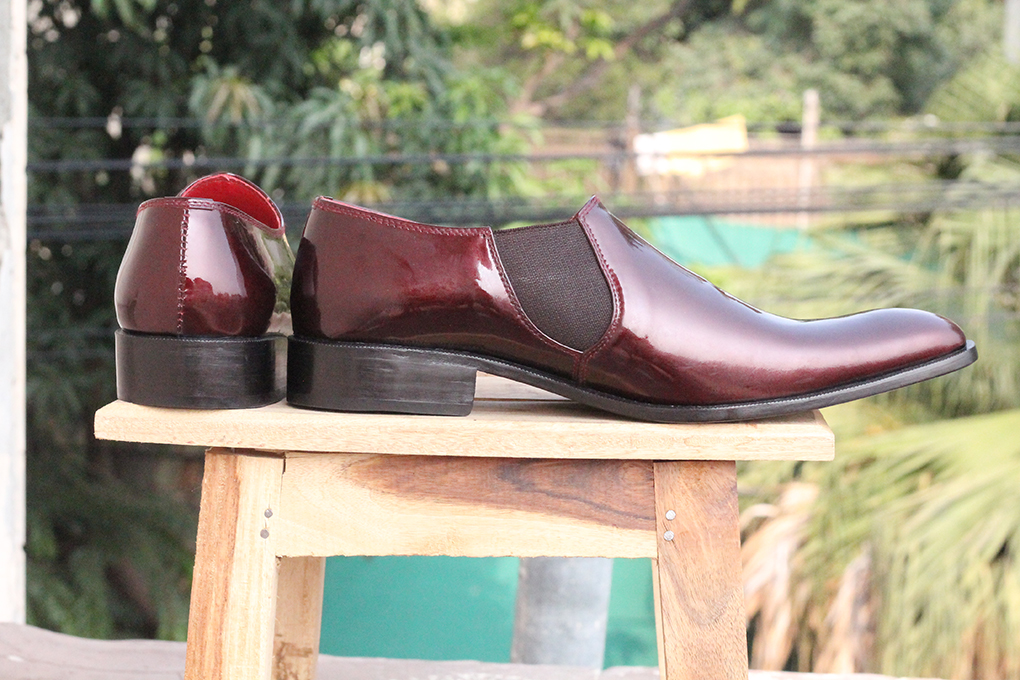Handmade Mens Burgundy Leather Slip On Loafers Stylish shoes
