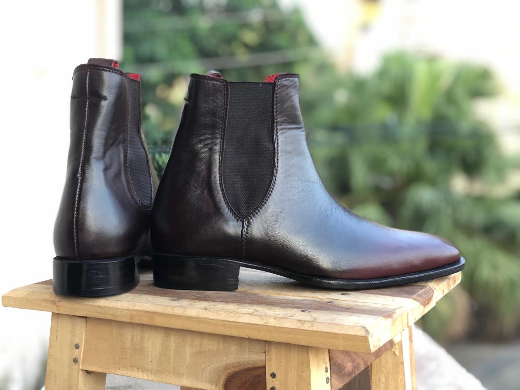 Handmade 2 Tone Brown Leather Casual Ankle High Chelsea Boots for Mens