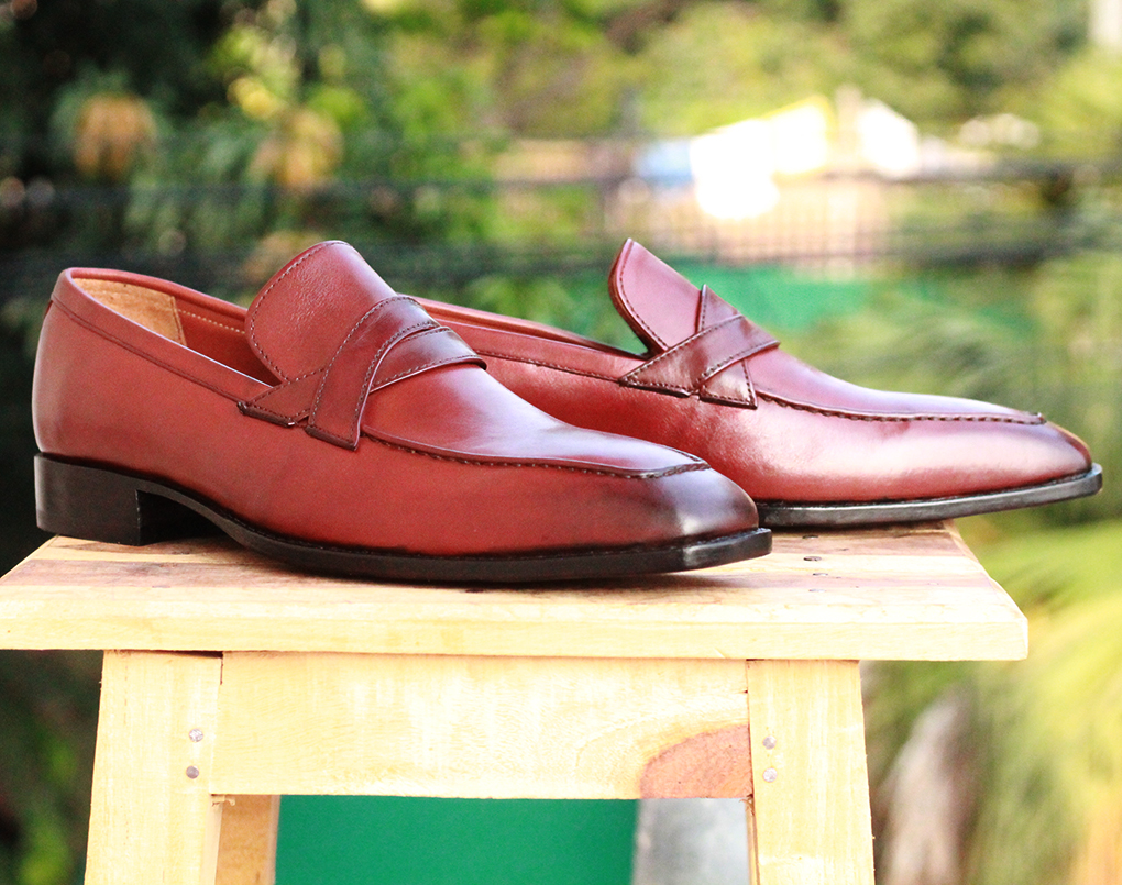 Mens Handmade Burgundy Leather formal shoes. Slip On Slippers Shoes