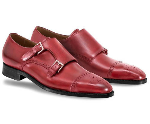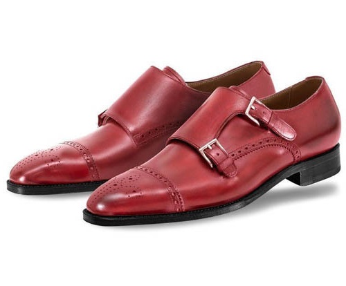 Handmade Mens Monk Shoes, Mens Burgundy Leather Double Monk Strap Formal Shoes