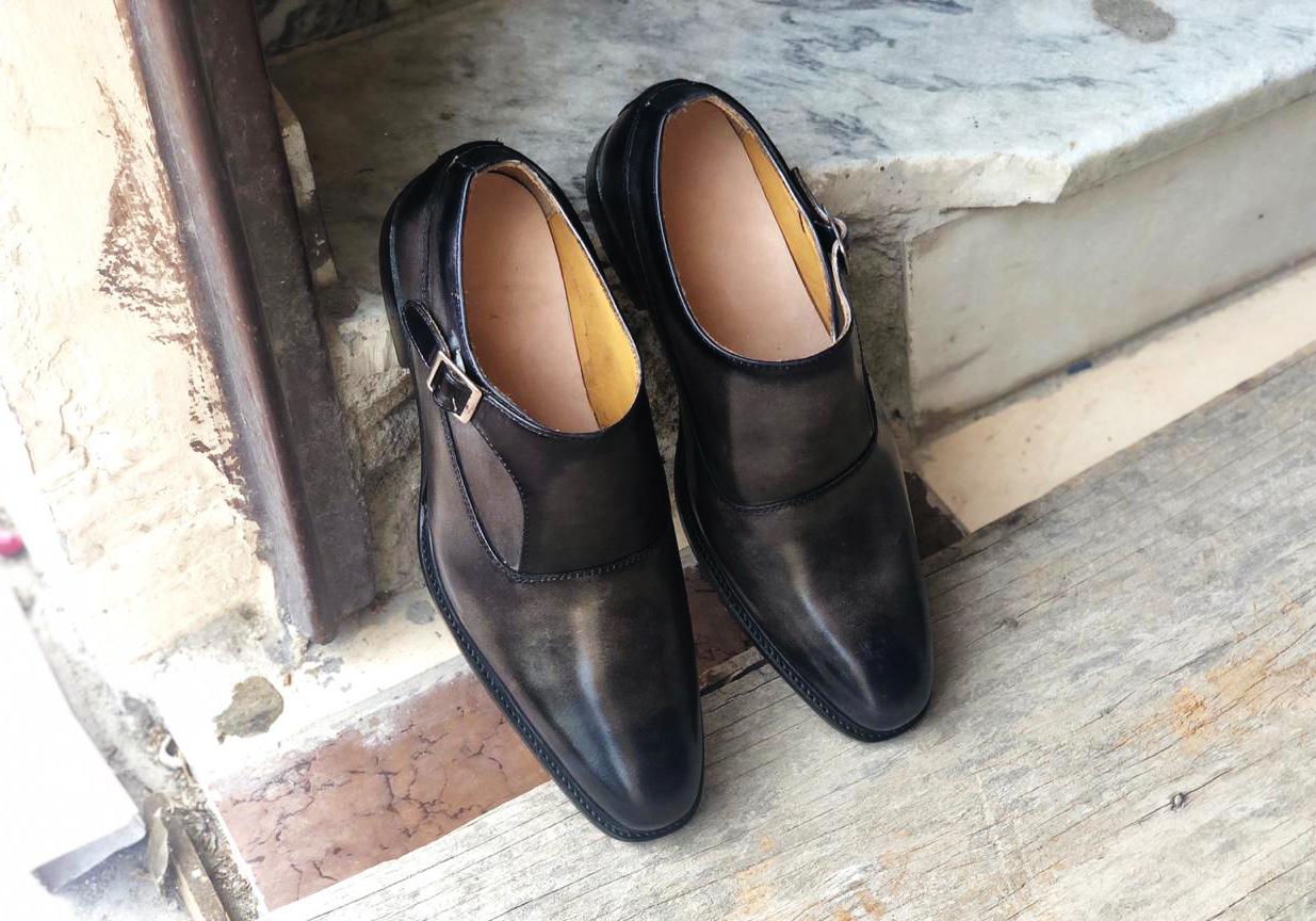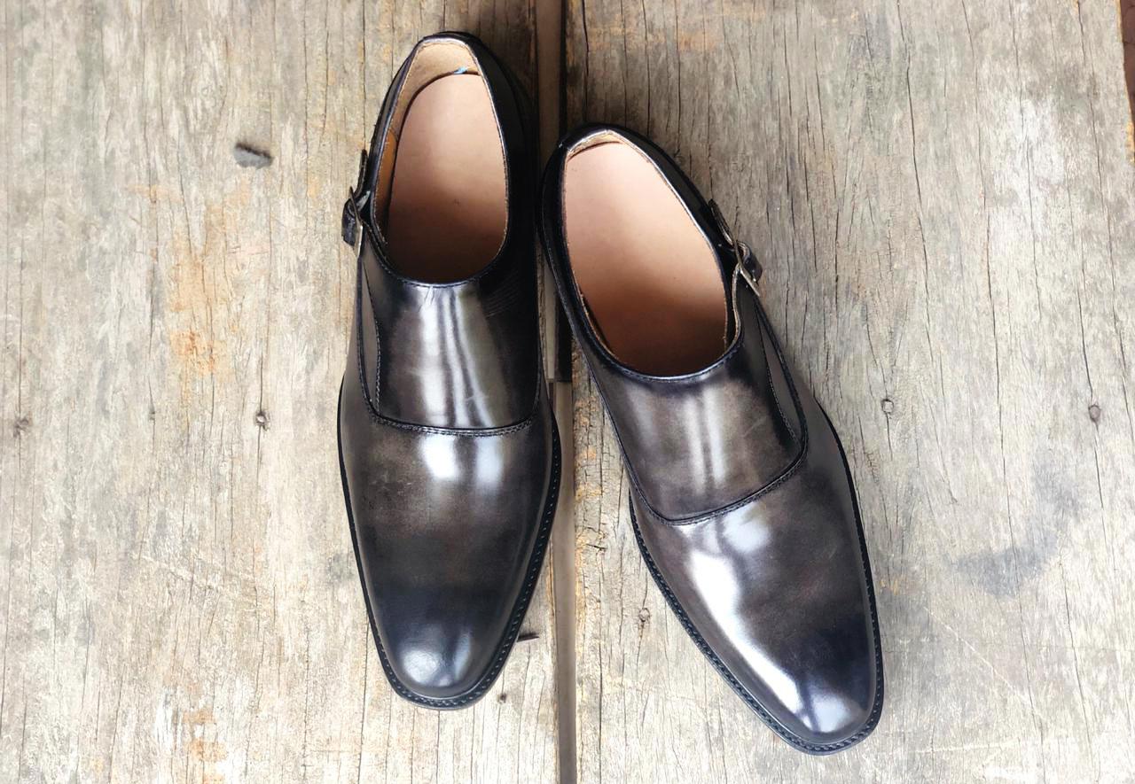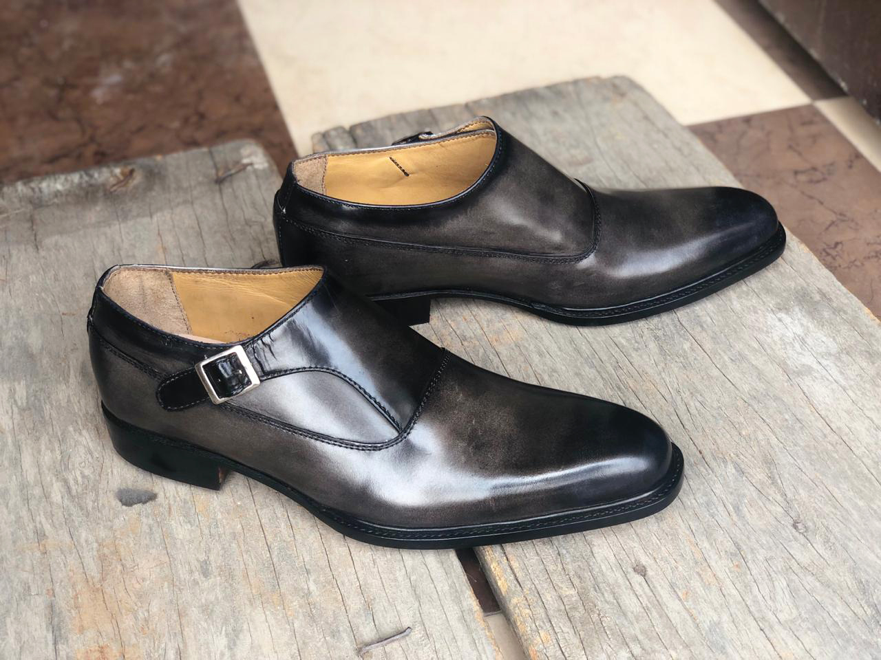 Handmade Mens Black Color Shoes Stylish Leather Monk Strap Shoes