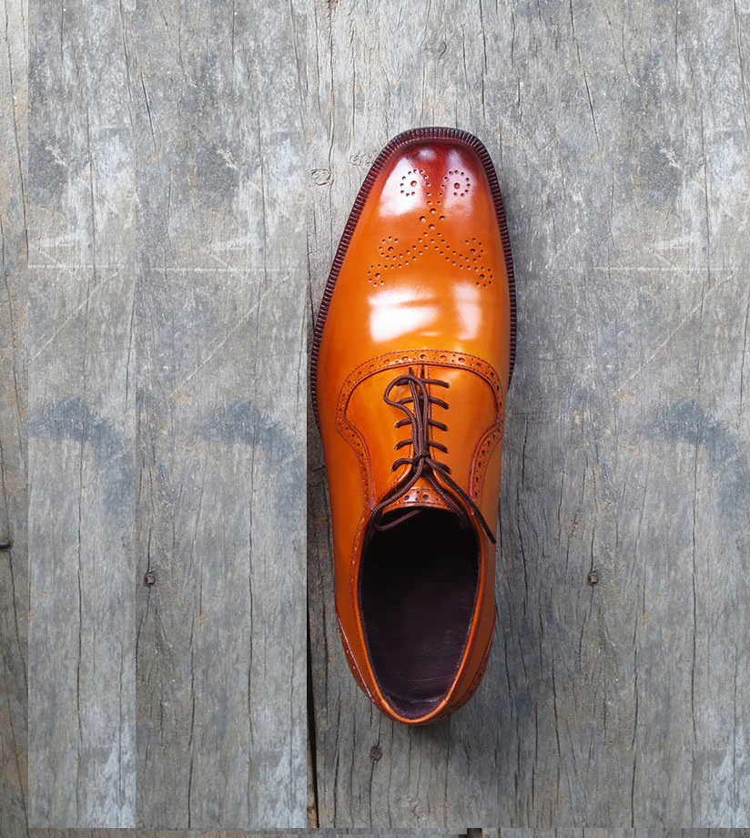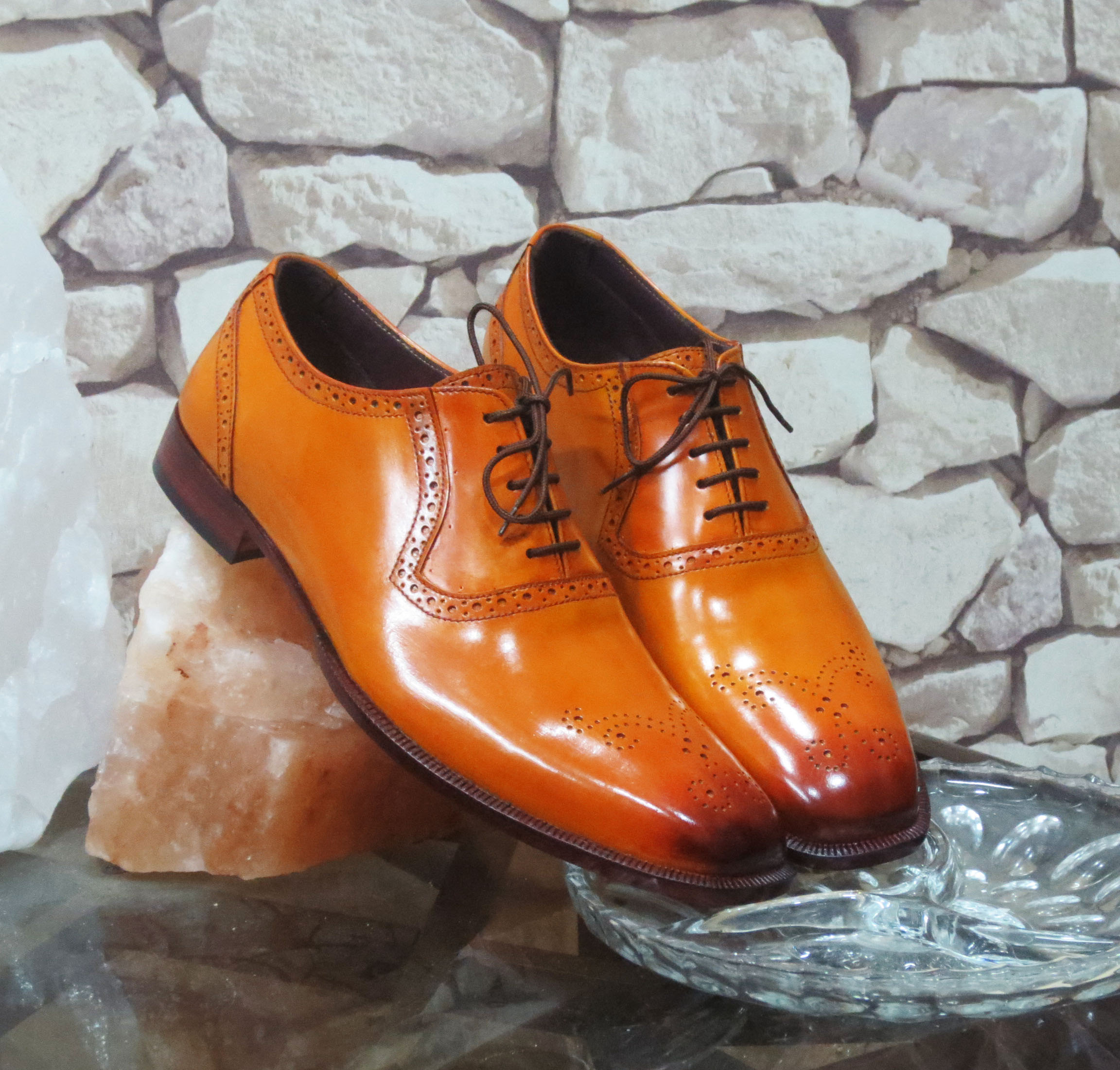 Handmade Tan Color Leather Shoes, Mens Brogue Lace Up Dress Shoes