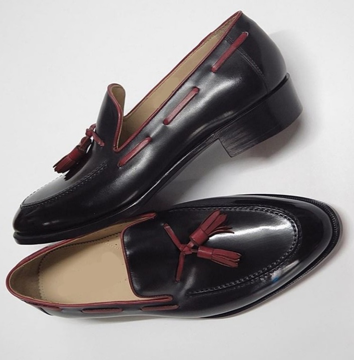 Handmade Black Color Leather Loafer Slipper Dress Mens Fashion Tussles Shoes