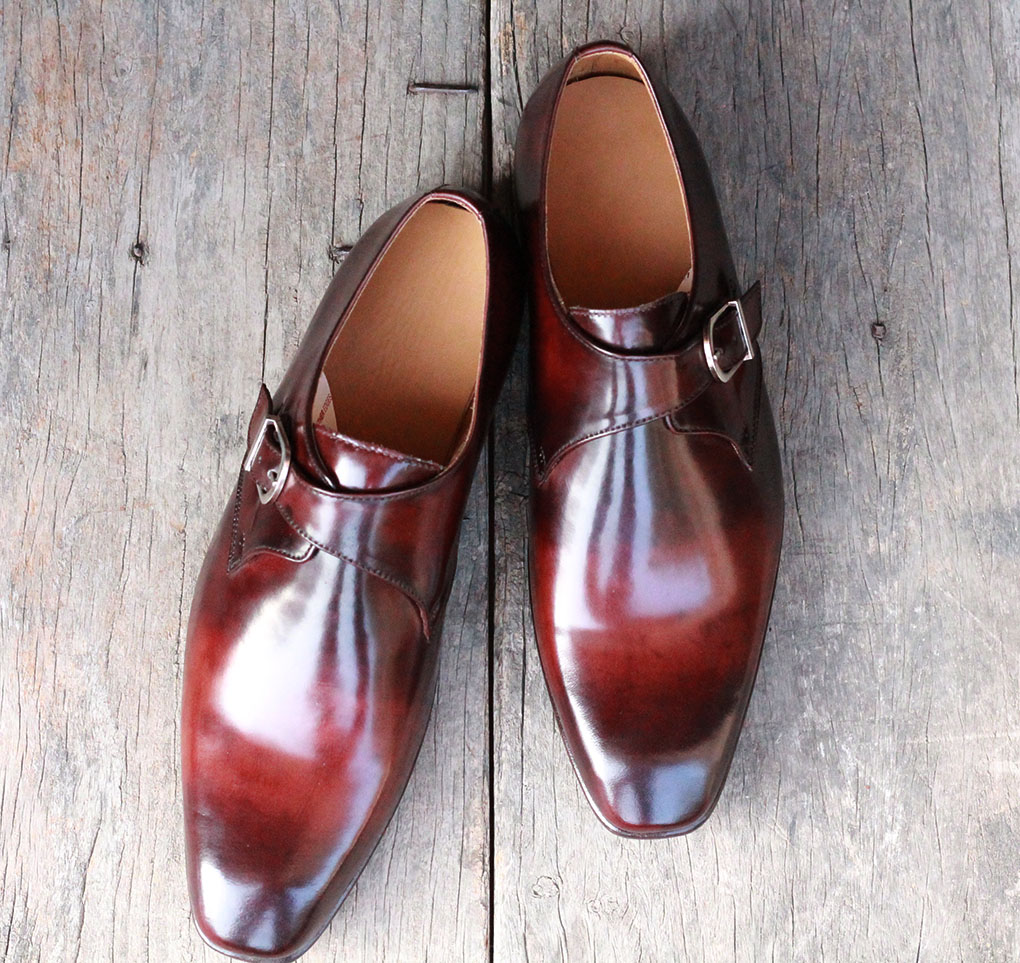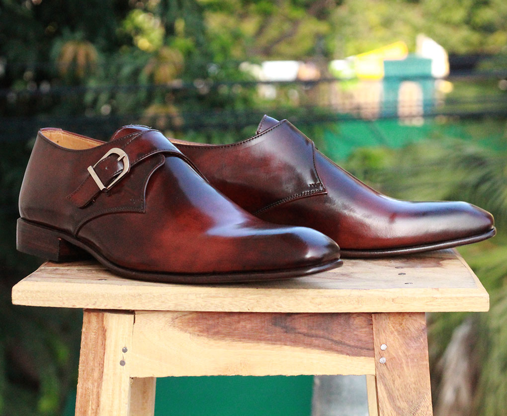 Mens 2 Tone Brown Genuine Leather Oxford Handmade Monk Strap Shoes