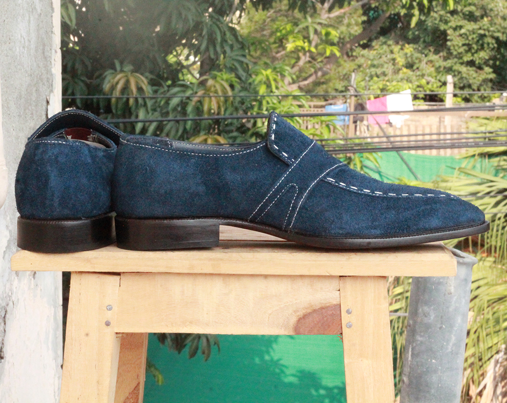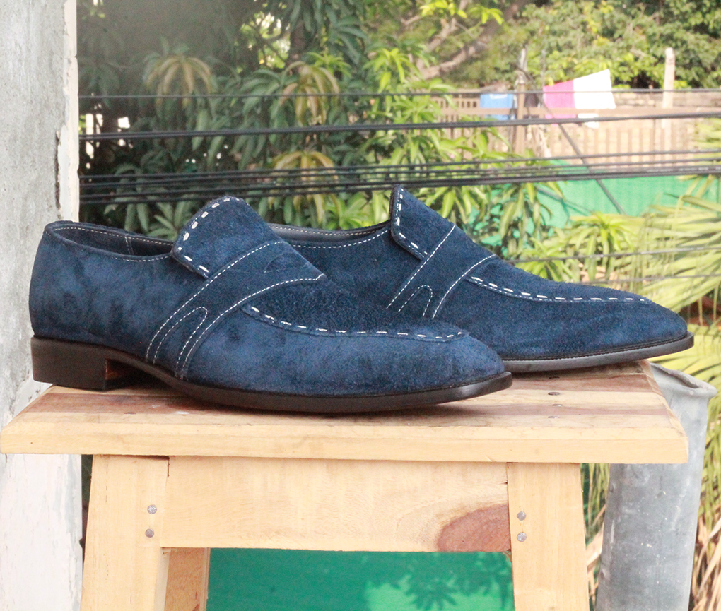Mens Handmade Navy Blue Suede formal shoes Slip On Slippers Penny Loafers Shoes