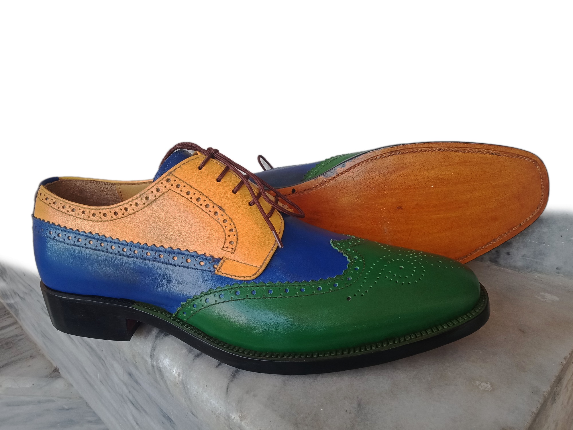 Handmade wing tip Multi Color Shoes, Mens Oxford Leather Lace Up Fashion Shoes