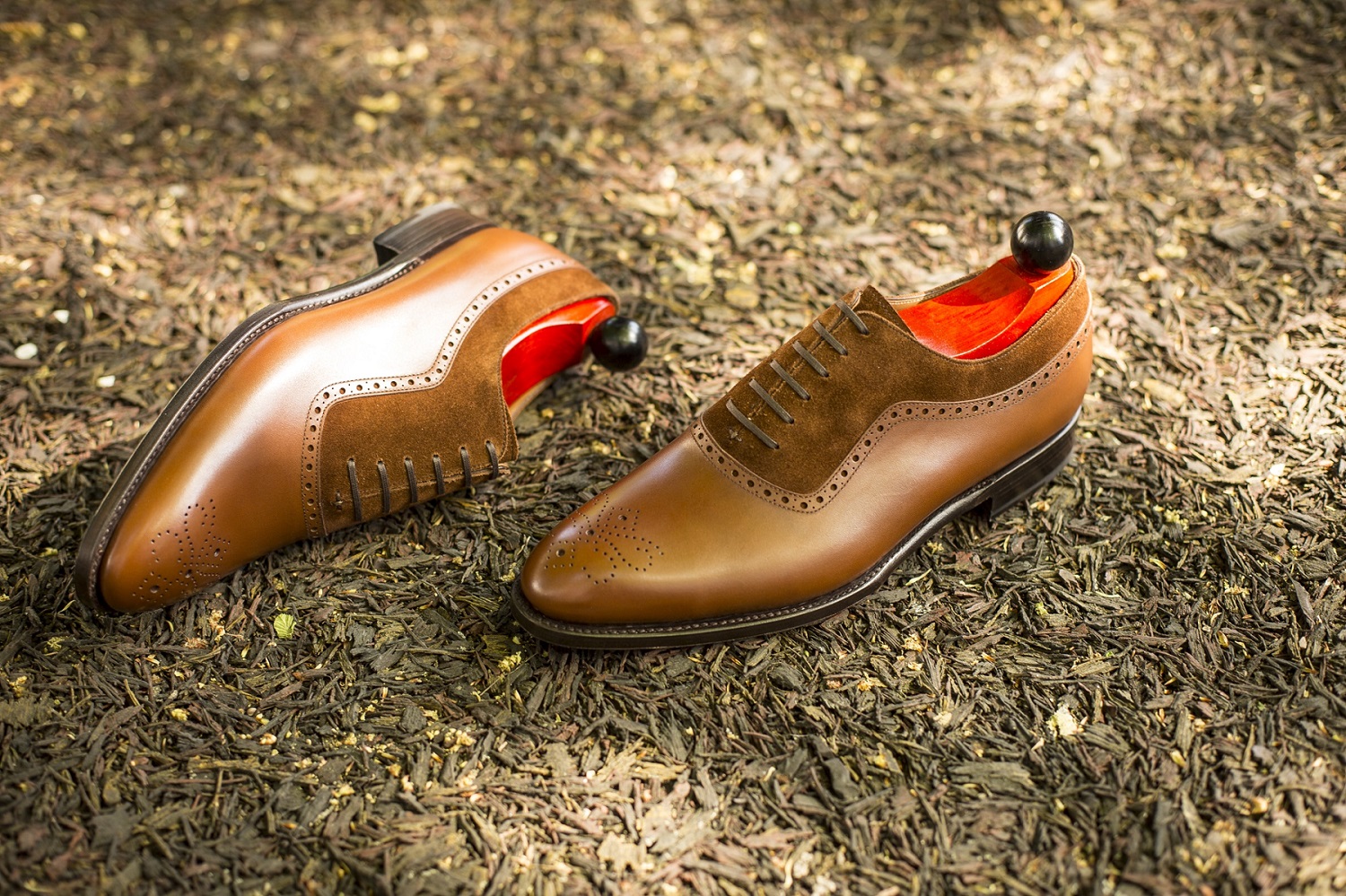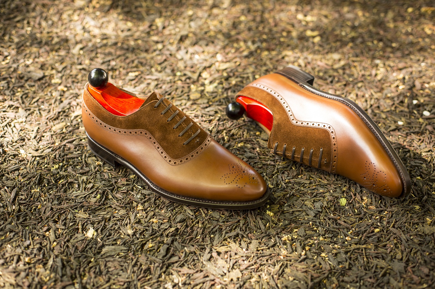 Handmade Mens Casual Shoes, Mens Tan Brown Color Leather & Suede Lace Up Casual Shoes.