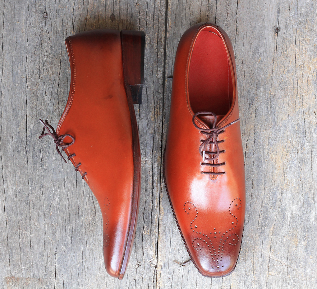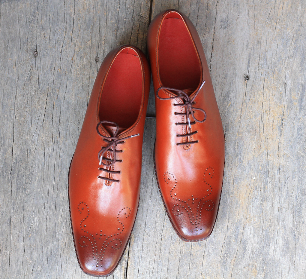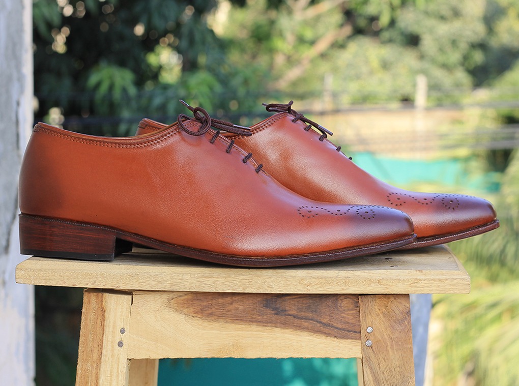 Mens Tan Brown Brogue Leather Shoes. Mens Handmade Whole Cut Shoes. Dress Shoes