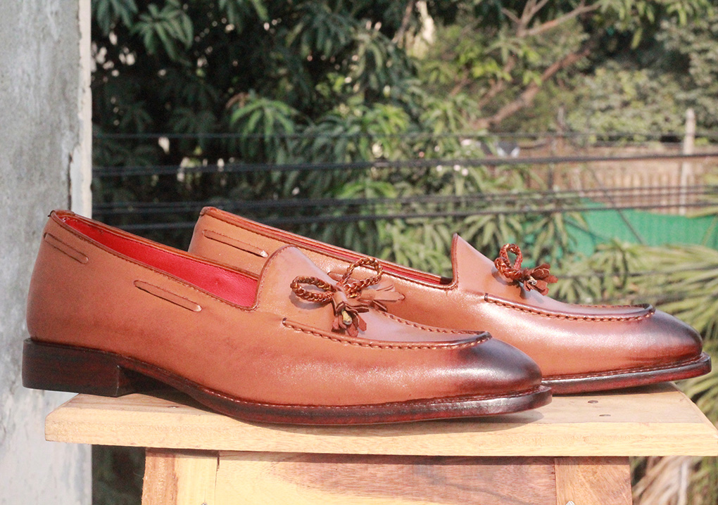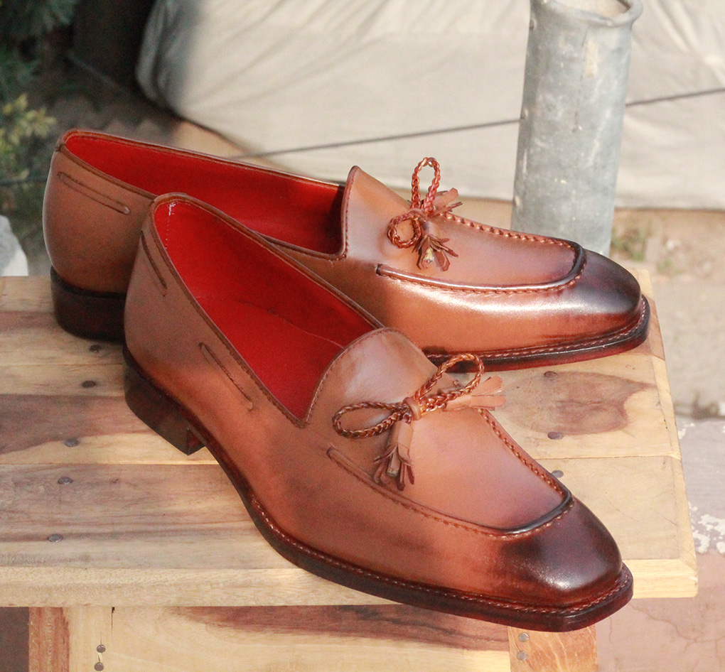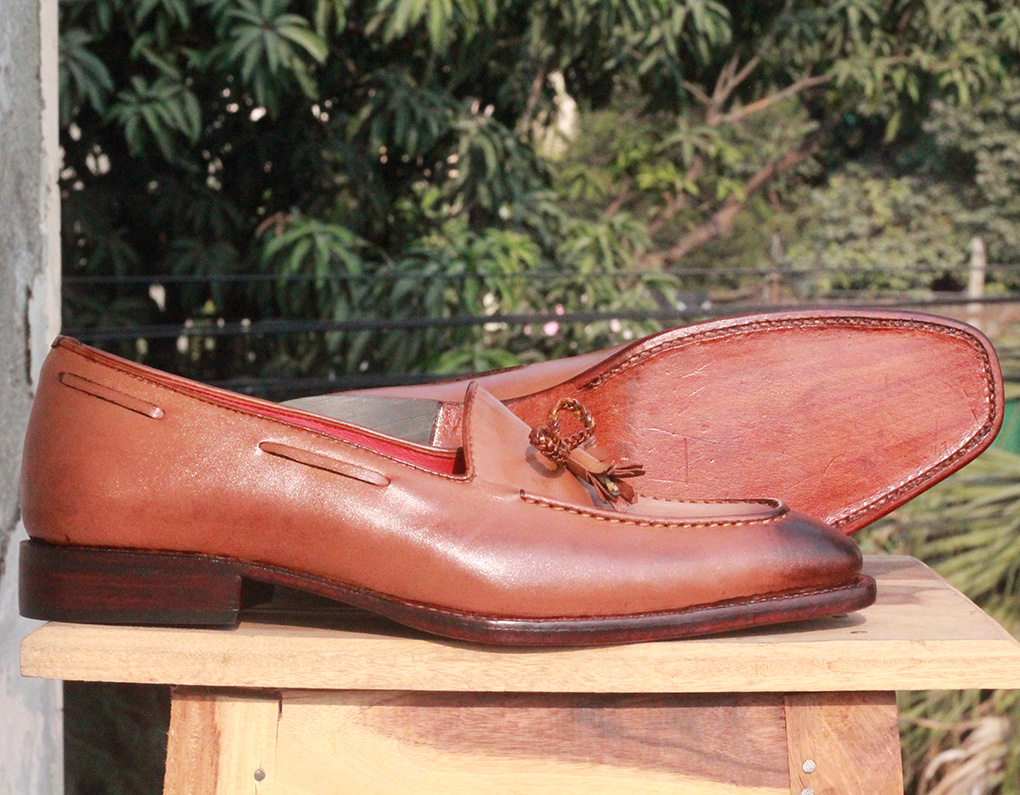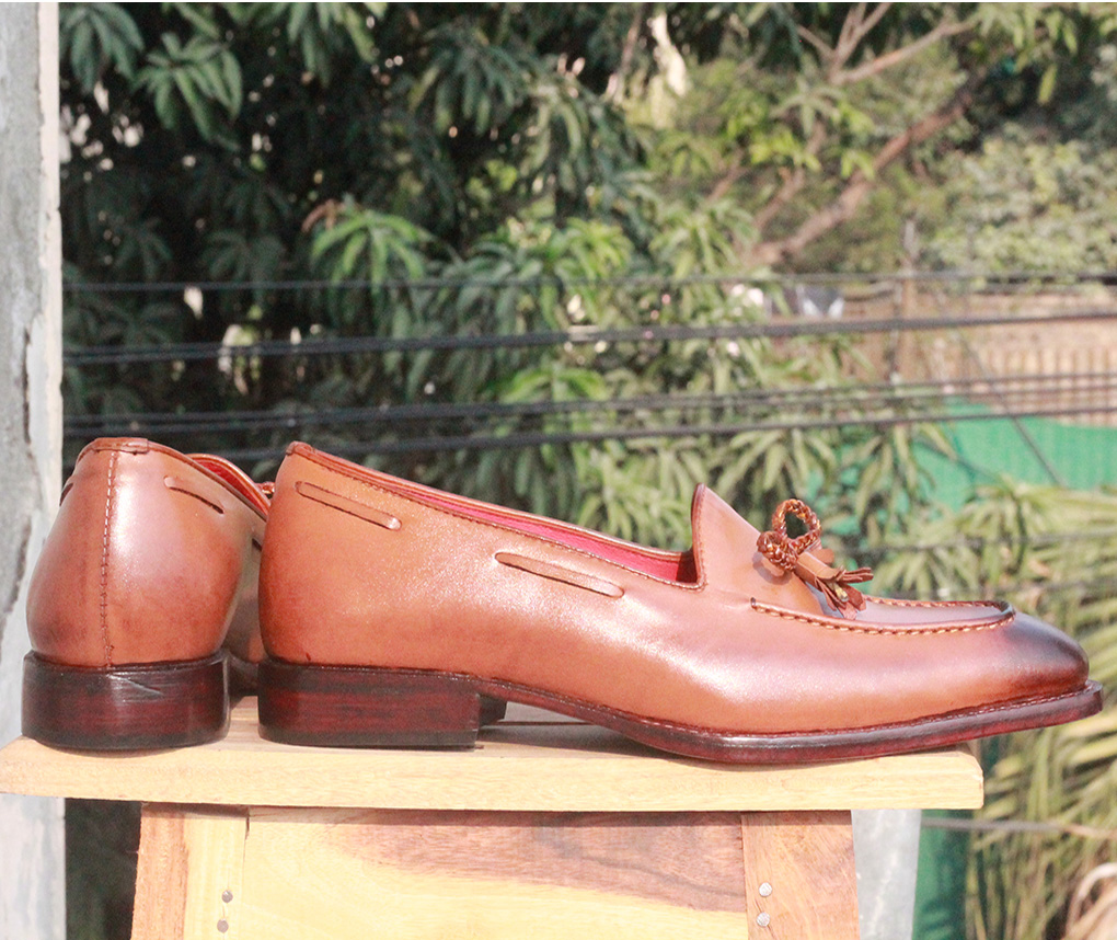 Brown Tussle Slip on shoes. Handmade Leather Shoes. Mens Slip Ons