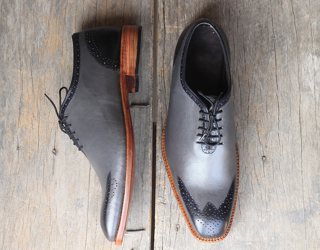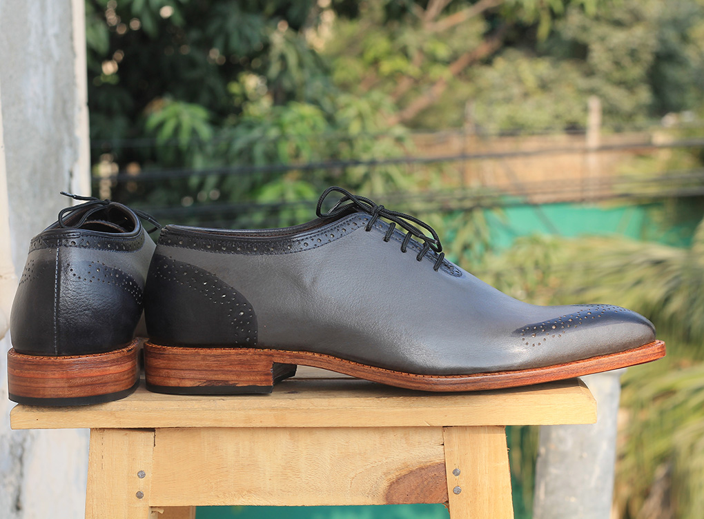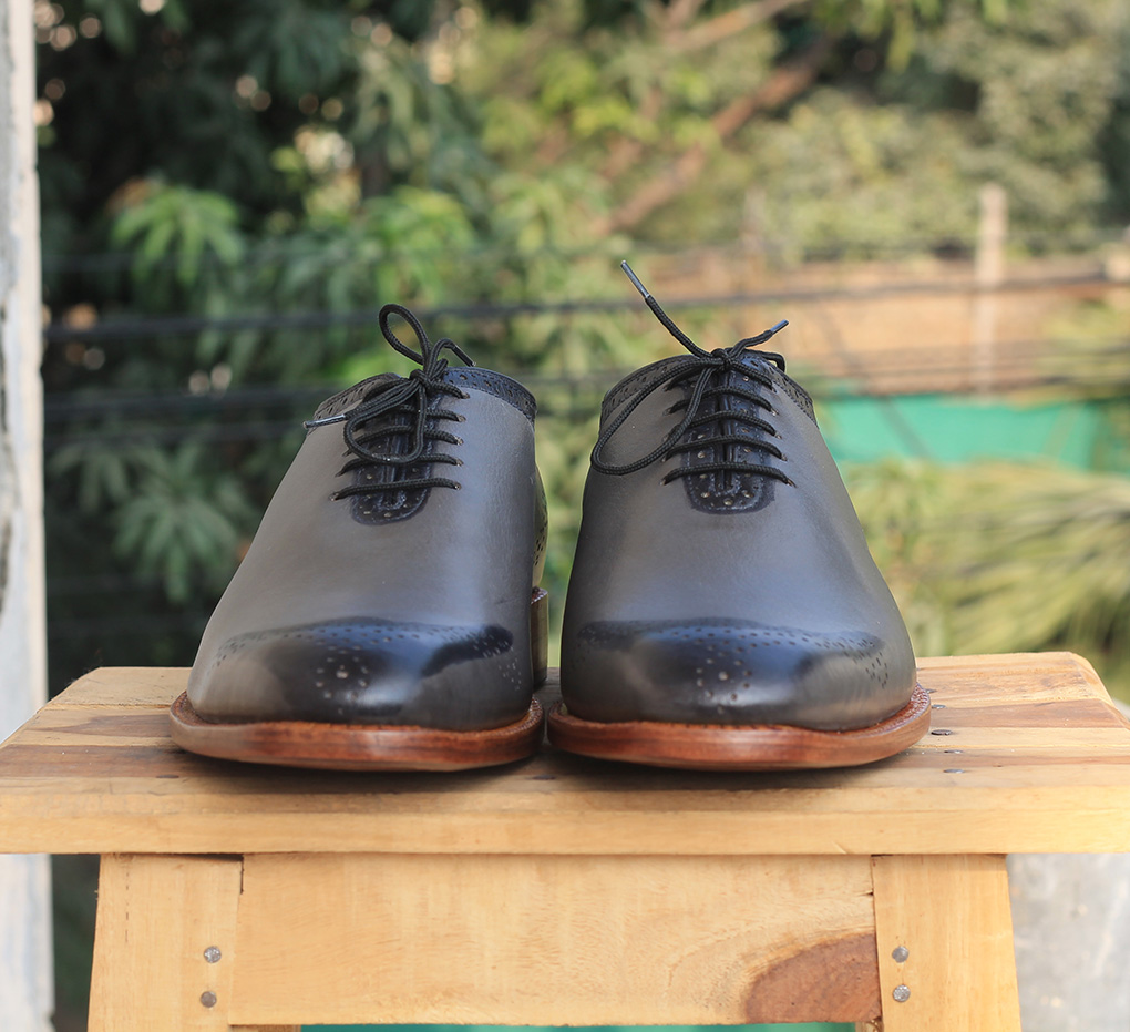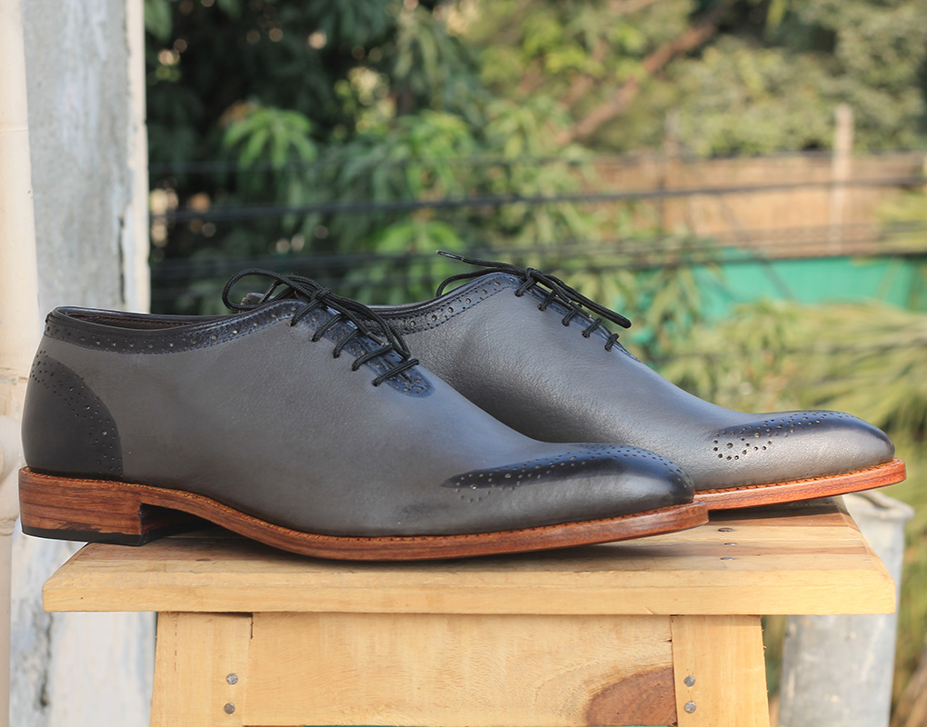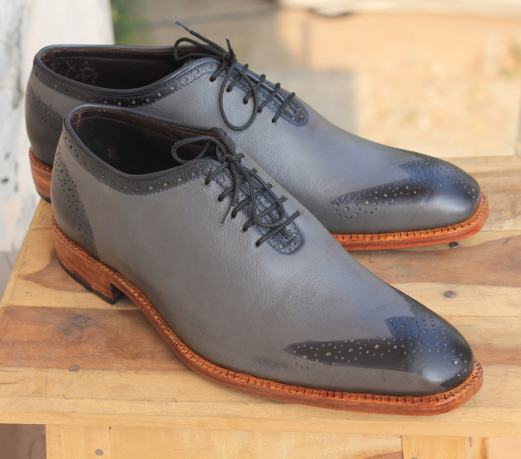Mens Gray whole Cut Leather Shoes. Handmade Leather Shoe.