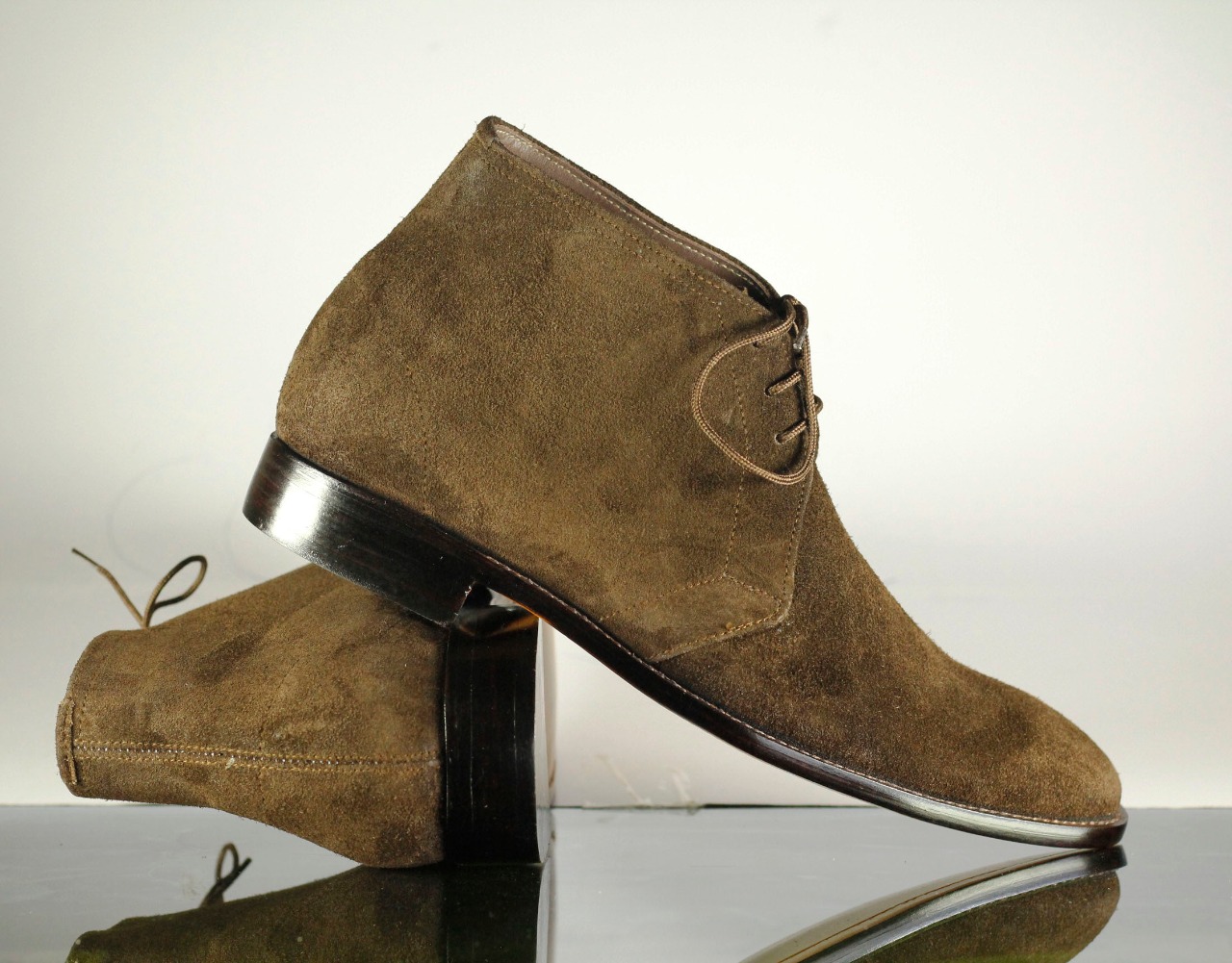 Handmade Mens Brown Suede Chukka Boots. Laceup Chukka Boots