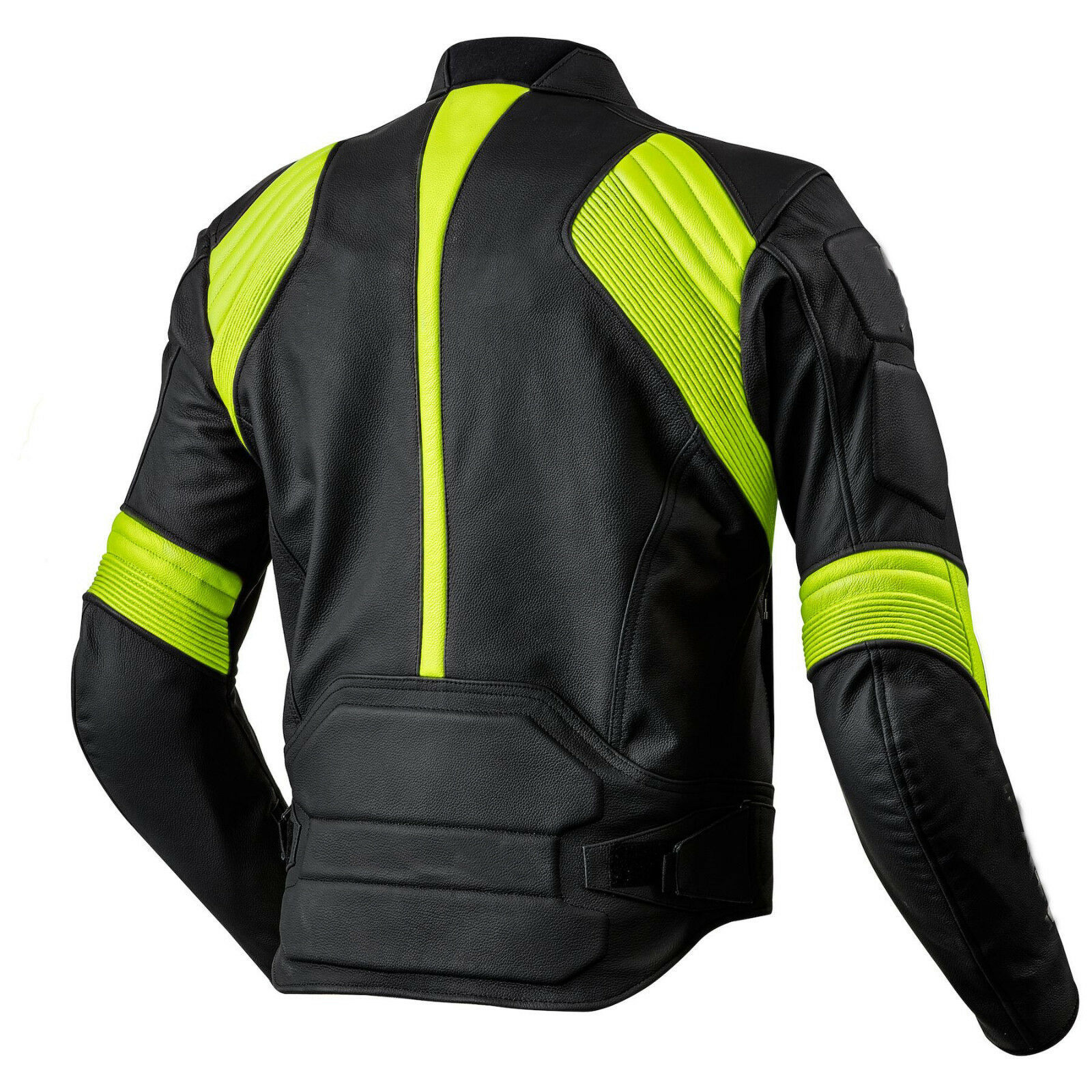 Men Black Yellow Cont Motorcycle Front Zipper Genuine Leather Safety Pads jacket Premium Quality 1.2-1.3 mm Cowhide Leather. Stitched with High Strength Nylon Thread. YKK Zippers. Pre-Curved Arms for Extra Riding Comfort. Mandarin Collar Insulating, Zip-out Quilted Vest Liner High-quality non-Removable Polyester Mesh Lining (attached to the jacket) Zippered Cuffs. Connection zip to join trouser. Removable padding CE Approved Paddings at both elbows, shoulders and back Stretchable, soft & lightweight Made with biker's safety standards 100% Windproof, suitable for all weather conditions