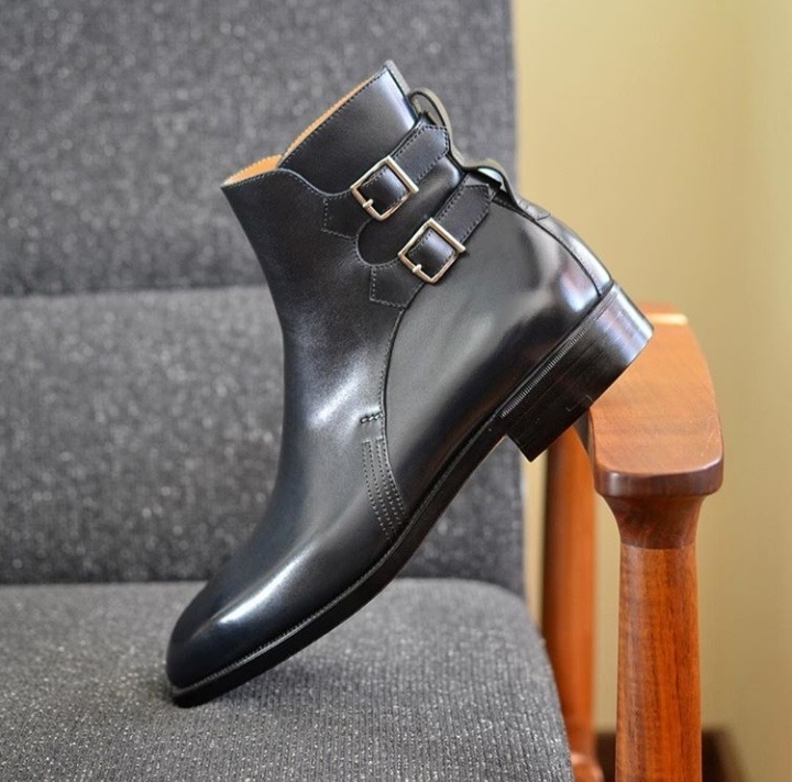 Handmade Leather Ankle High Boot, Men's Black Color Buckle Strap Fashion Boot