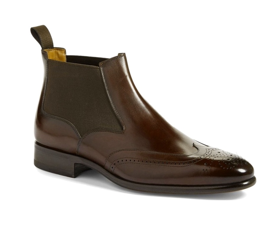 Brown Chelsea Boots Handmade Leather Boot, Men's Fashion wing Toe Slip Ons Boot