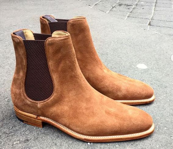 Handmade beige chelsea boots, men suede leather boots, dress wear boot for men