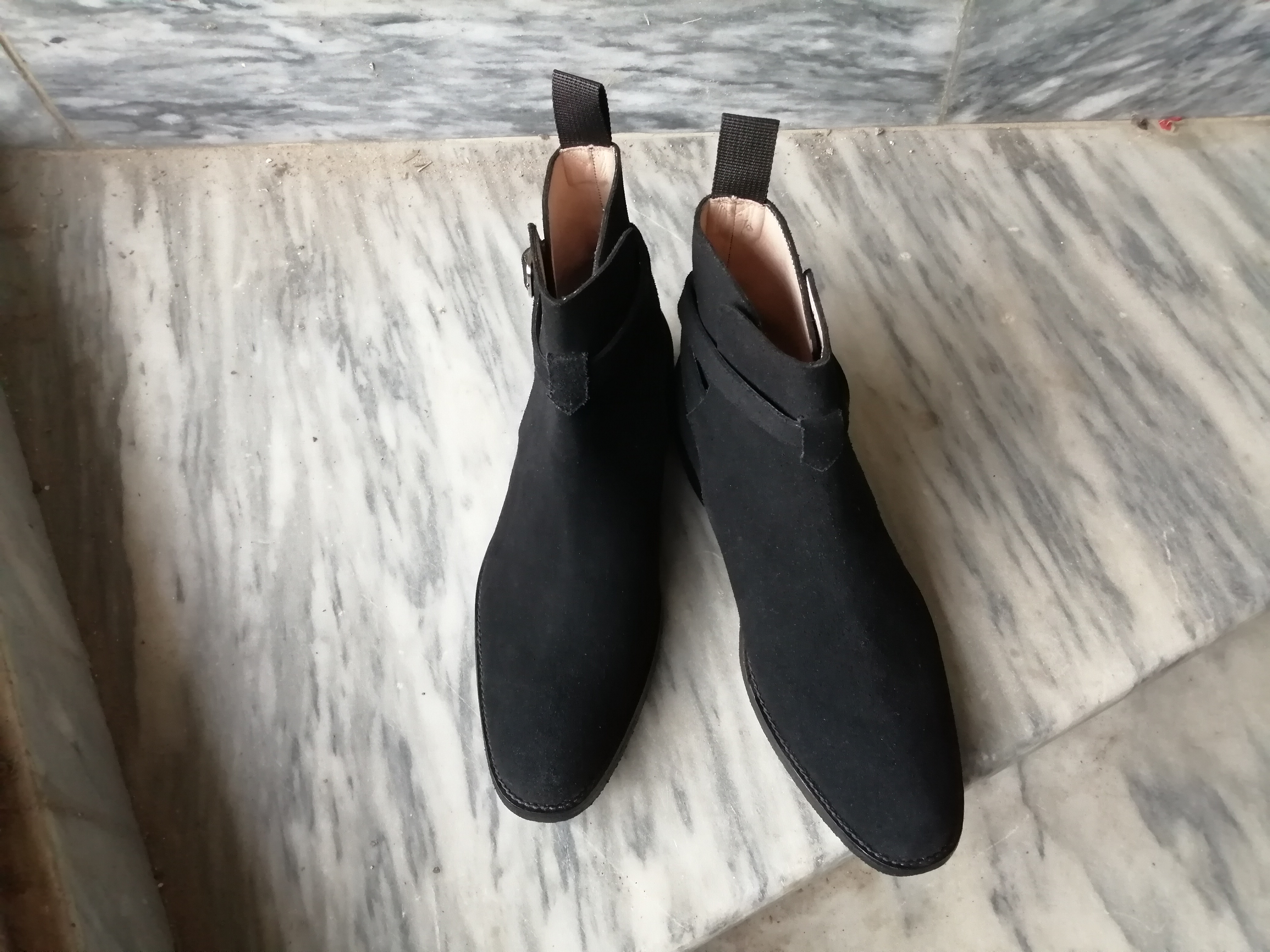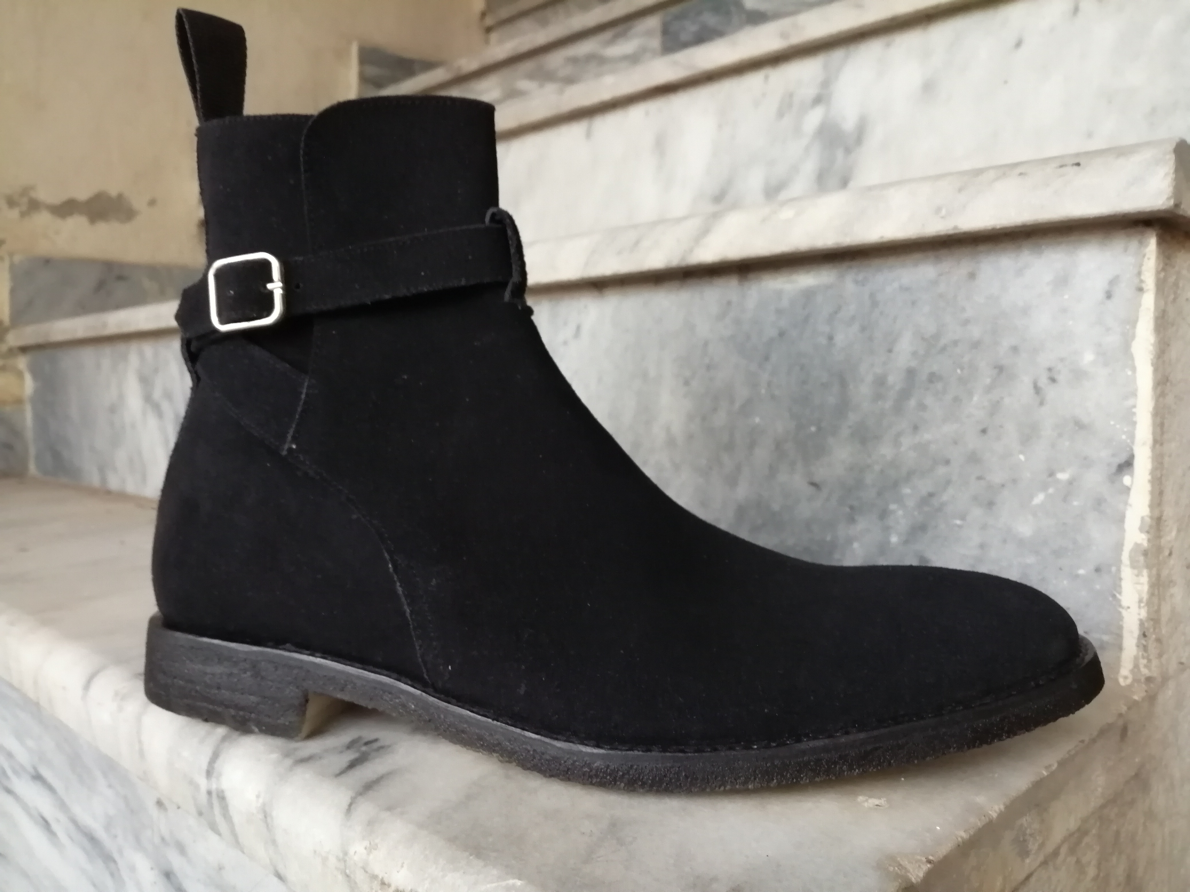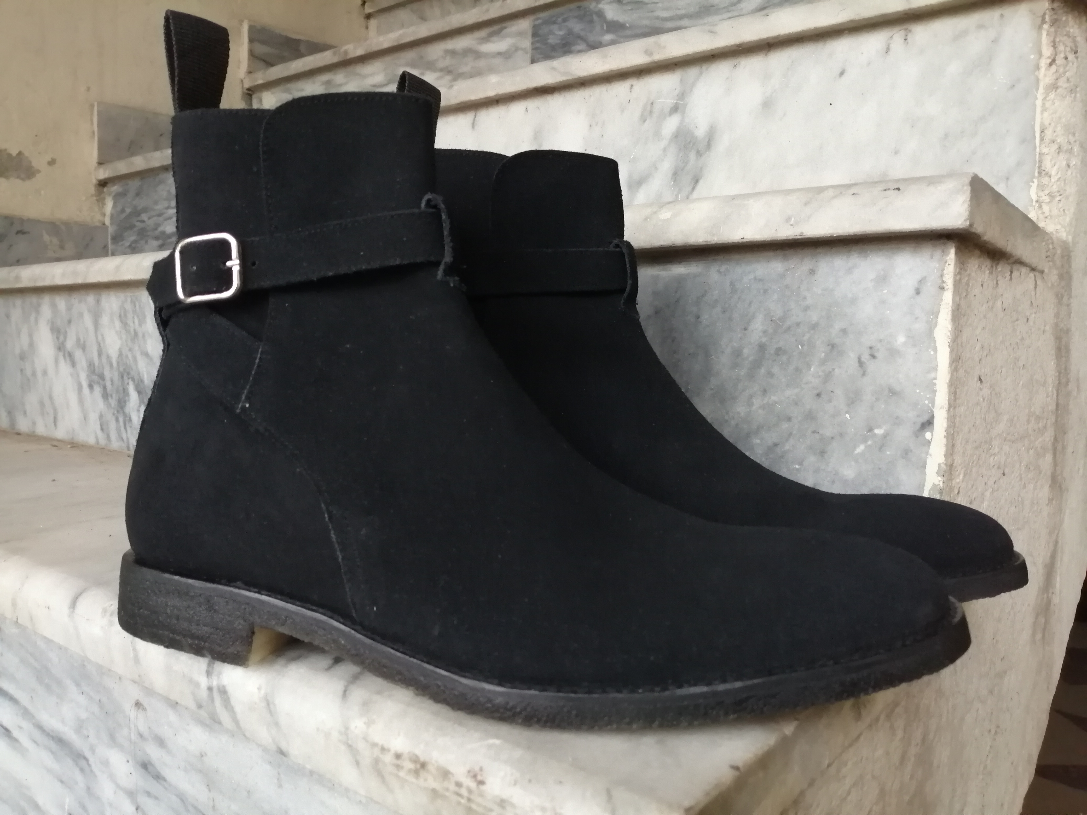 Handmade Mens Jodhpurs Buckle Strap Boot Mens Black Suede Ankle High Boot