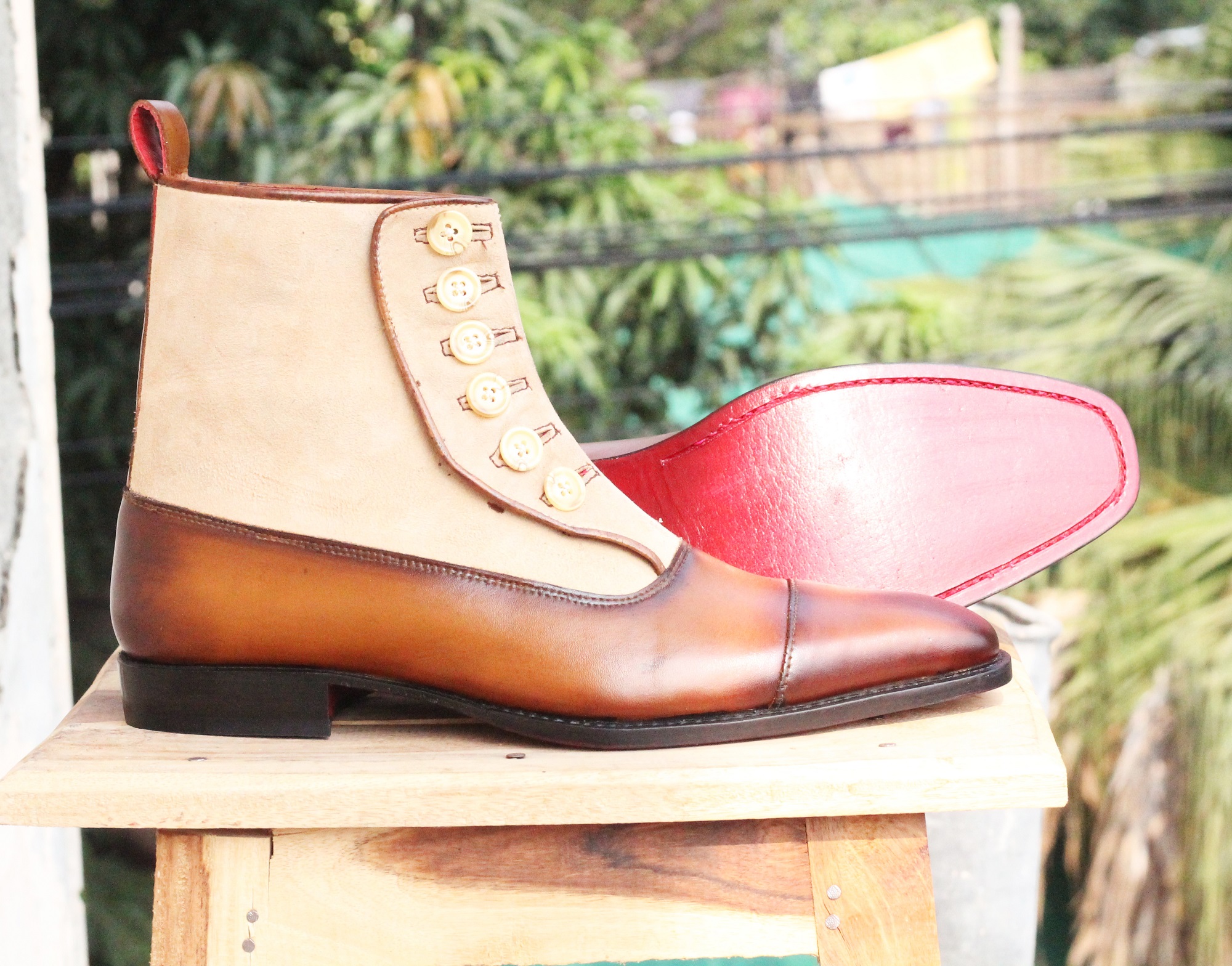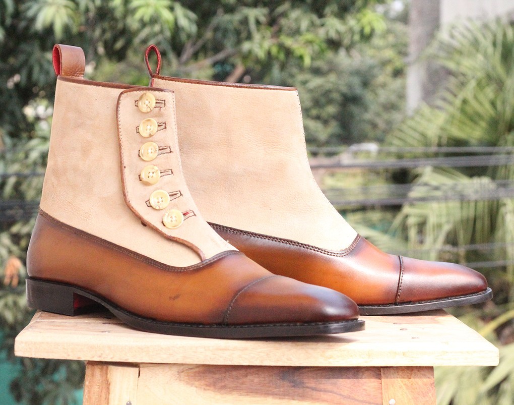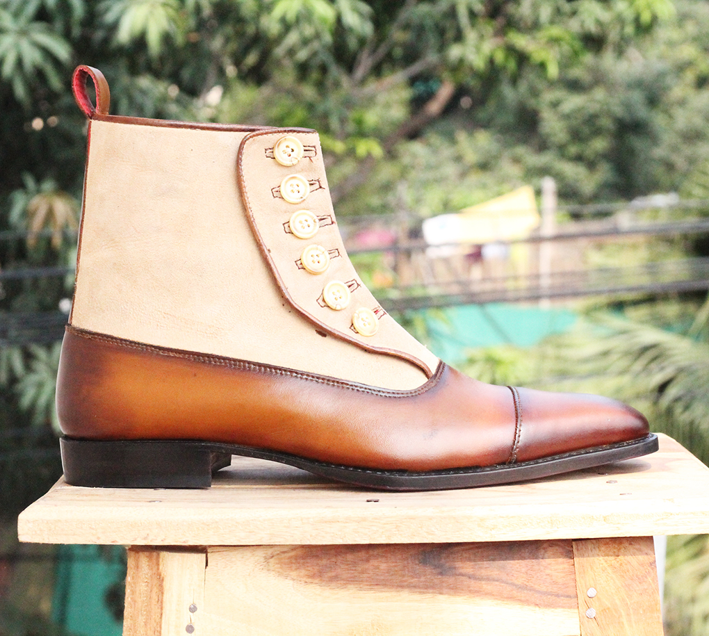 Mens Brown Button Top Ankle Boots. Handmade Mens High Ankle Boots. Mens Boots