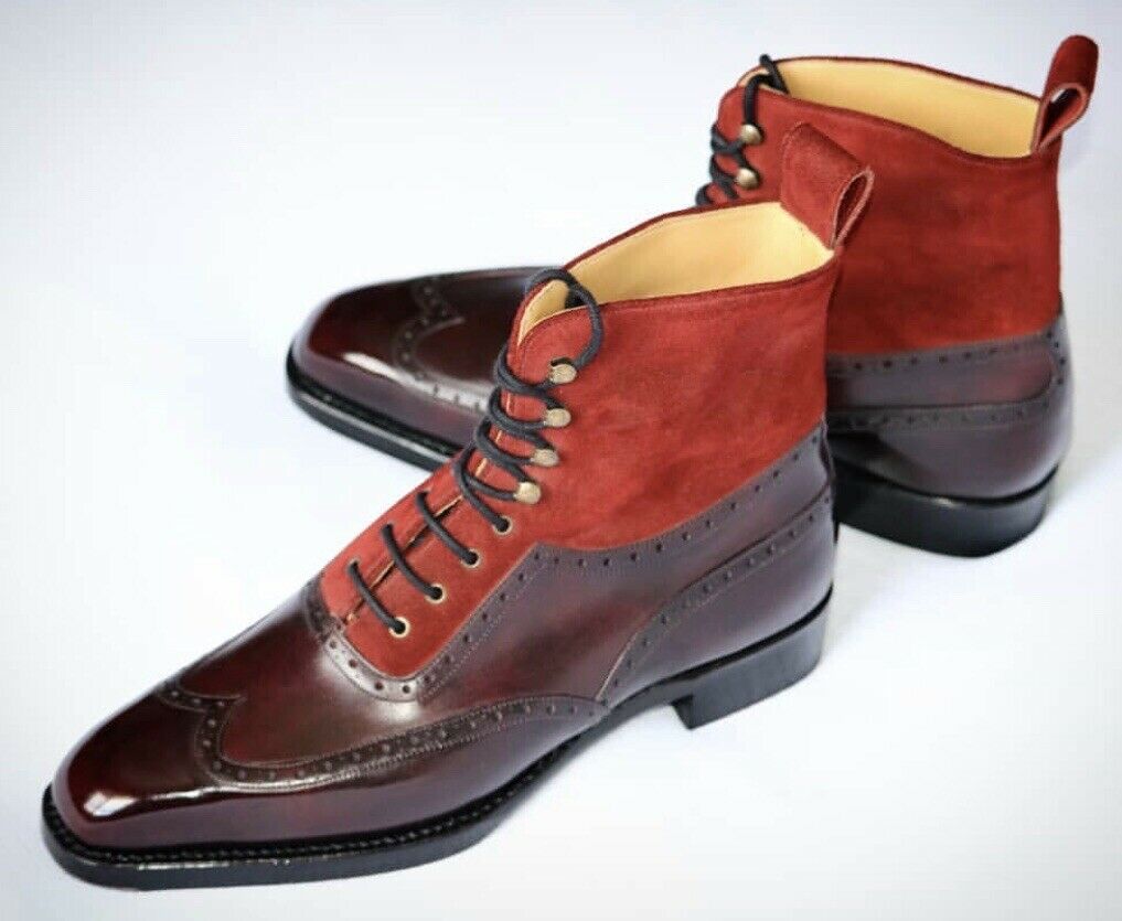 Brown Two Tone Leather Ankle Boots. Mens Lace Up Boots. Handmade Boots