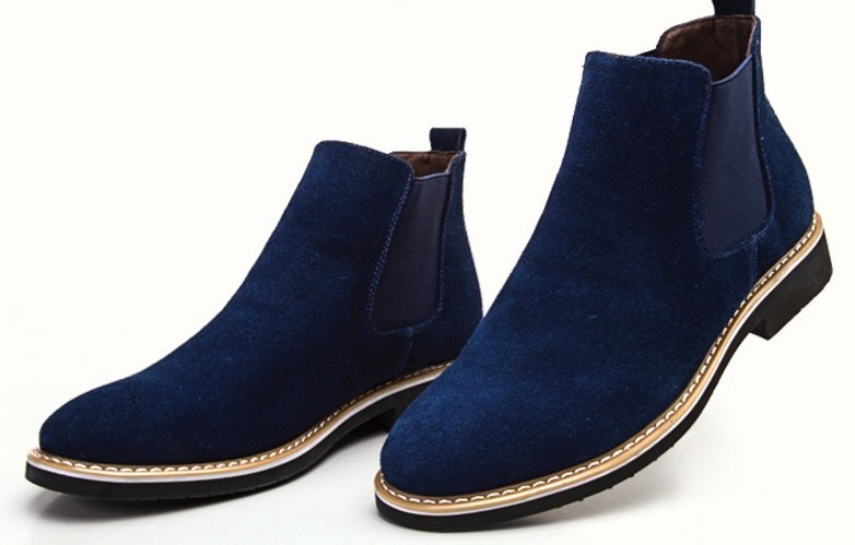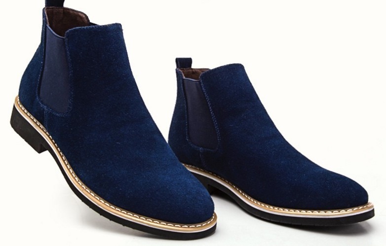 Navy Blue Suede Chelsea Slip On Boots. Mens Suede Boots. Handmade Mens Boots