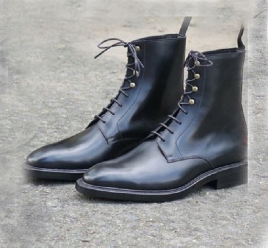 Black Leather Ankle High Lace Up Boots. Mens Handmade Leather Boots.