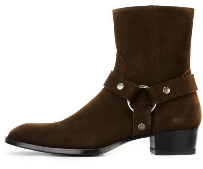 Handmade Men Jodhpurs Dark Brown Suede Shoes, Western Cowboy Zipper Boots Ankle High