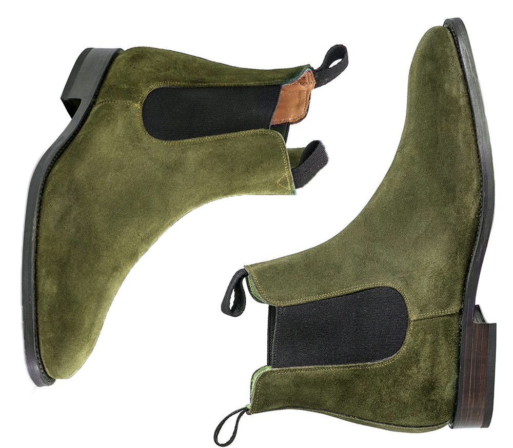 Handmade Chelsea Suede Boots, Chelsea Boot For Mens Green Fashion Ankle Boots