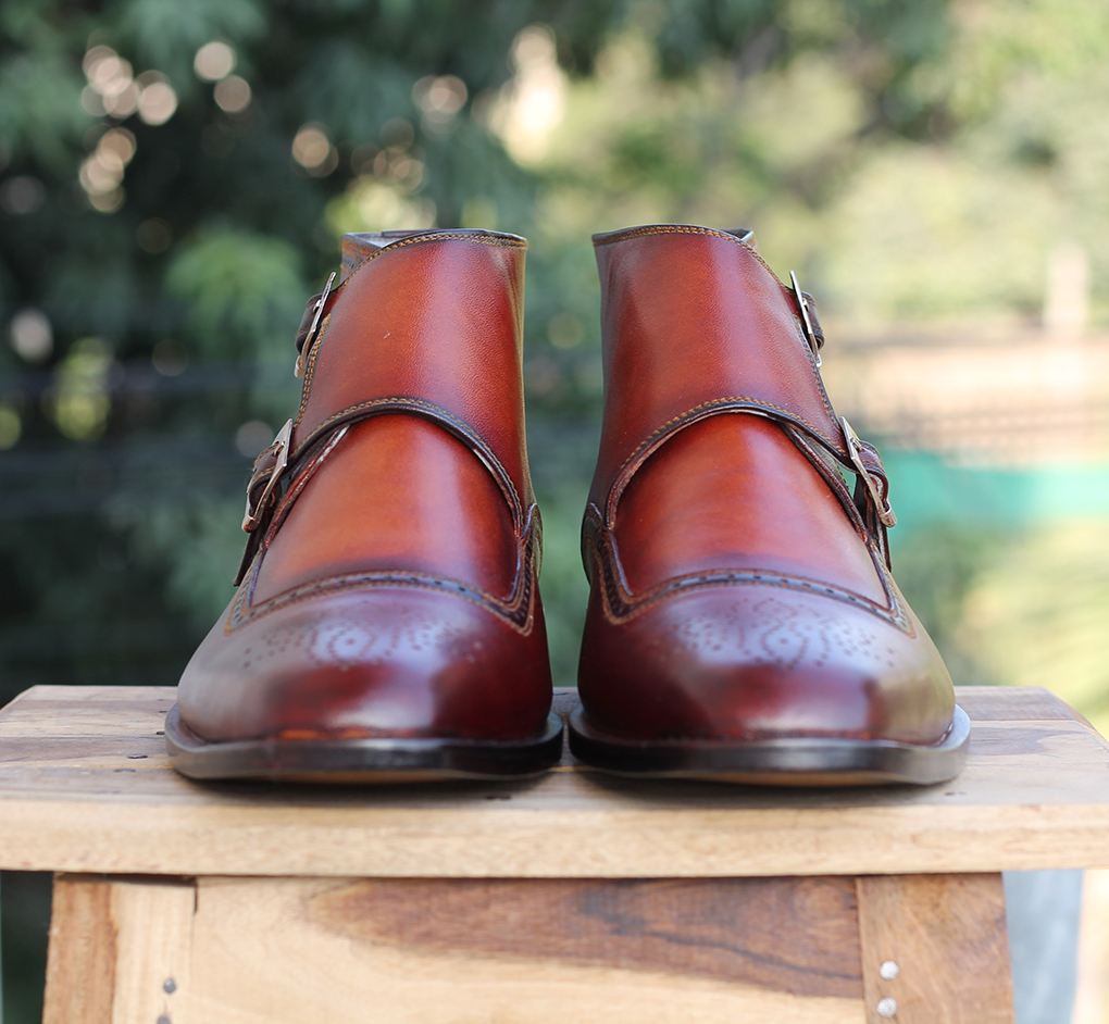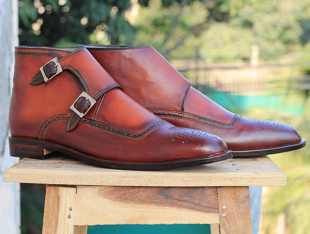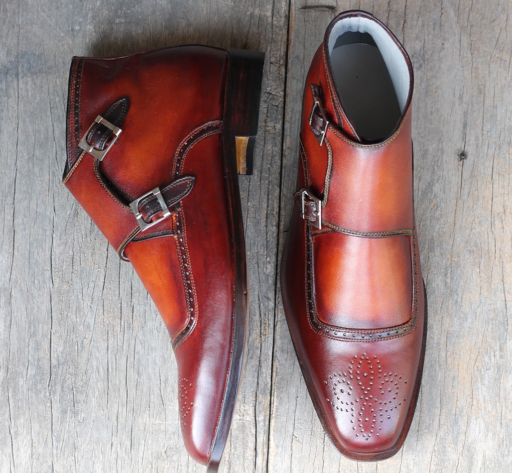 Brown Two tone Ankle Boots For Men. Handmade monk strap boots