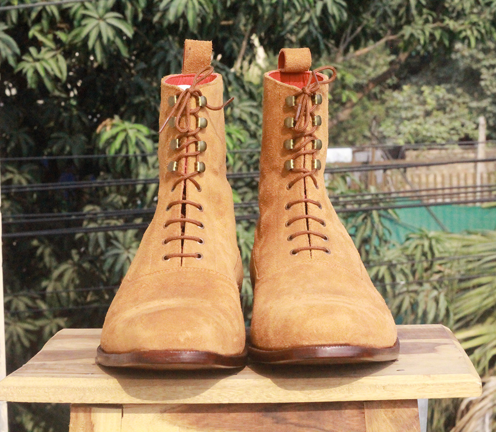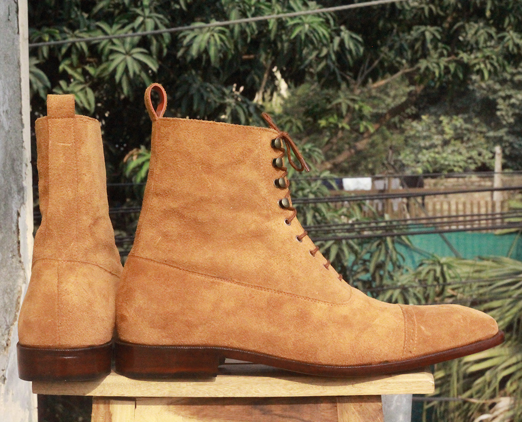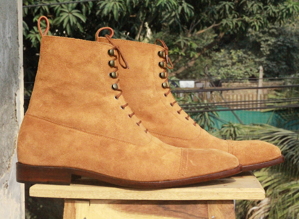 Mens Tan Cap Toe Suede Ankle Boots. Handmade High Anke Boots