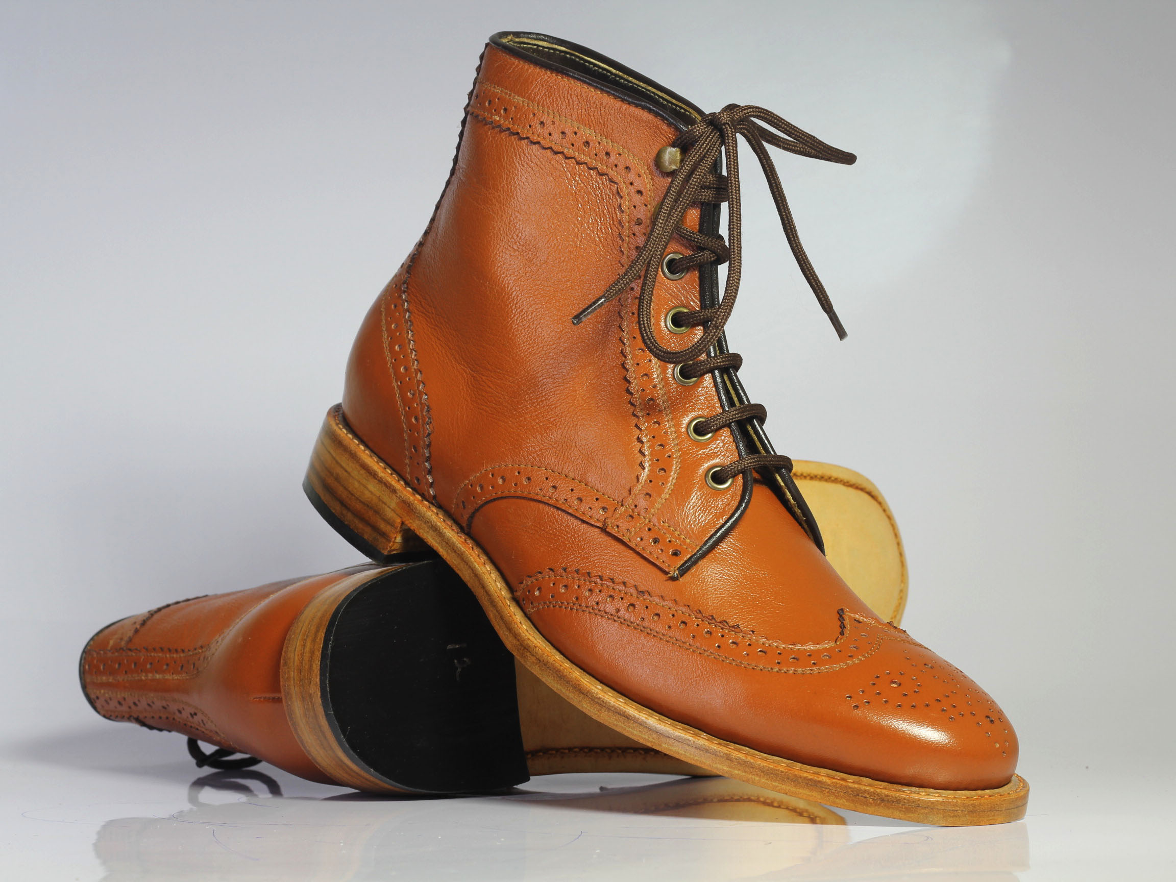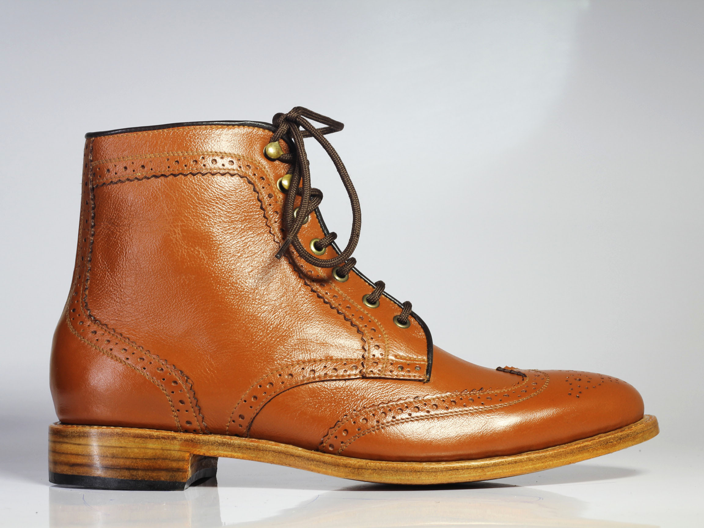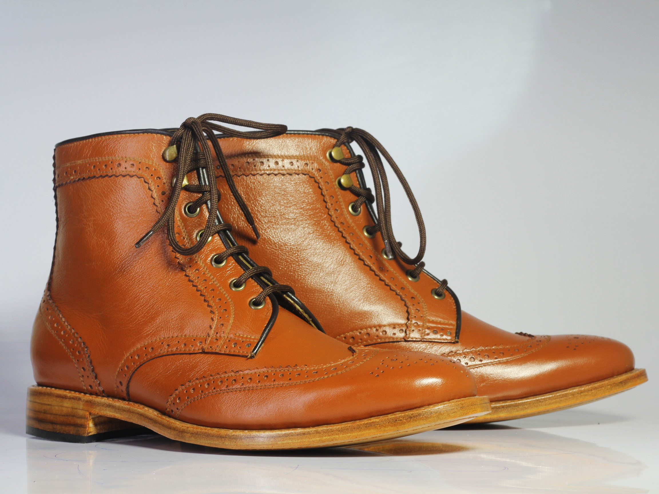Handmade Mens Ankle High Brown Wing Tip Brogue Leather Lace Up Boots. Boots for men