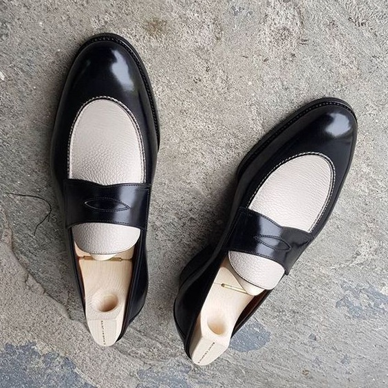 Handmade men black and white shoes, men spectator shoes, formal shoes for men